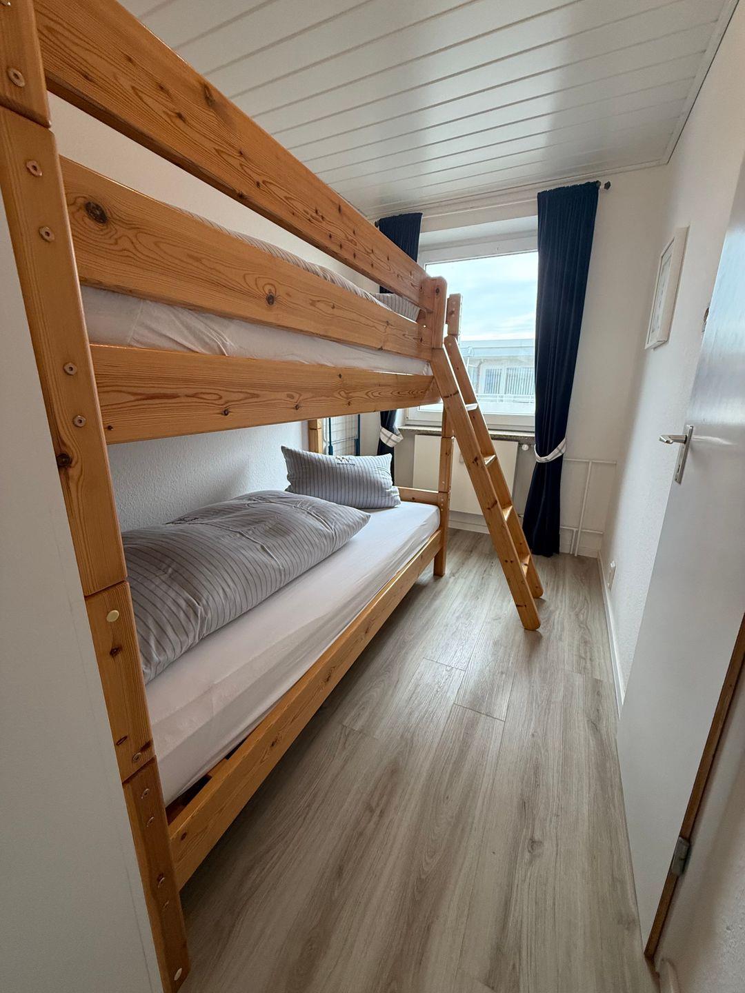 Seegang – mit Blick auf das Meer bietet Ihnen eine attraktive Ferienwohnung in direkter Strandlage auf der Nordseeinsel Wangerooge. Die Unterkunft befindet sich im 5. Stock und ist bequem per Aufzug erreichbar. Mit einer Wohnfläche von 43 m² bietet sie Platz für bis zu vier Gäste ( 2 Erwachsene und 2 Kinder). Ihre Wohnräume sind modern eingerichtet und wurden zuletzt 2018 renoviert. Das Interieur überzeugt durch Laminatböden in Wohn- und Schlafzimmer, einem großzügigen Wohnbereich mit gemütlicher Sofaecke, Sessel, Flat-TV (Kabelanschluss, digital, 25–34 Zoll) sowie einem separaten Essbereich mit Esstisch. Das moderne Badezimmer ist über das Kinderzimmer erreichbar.
