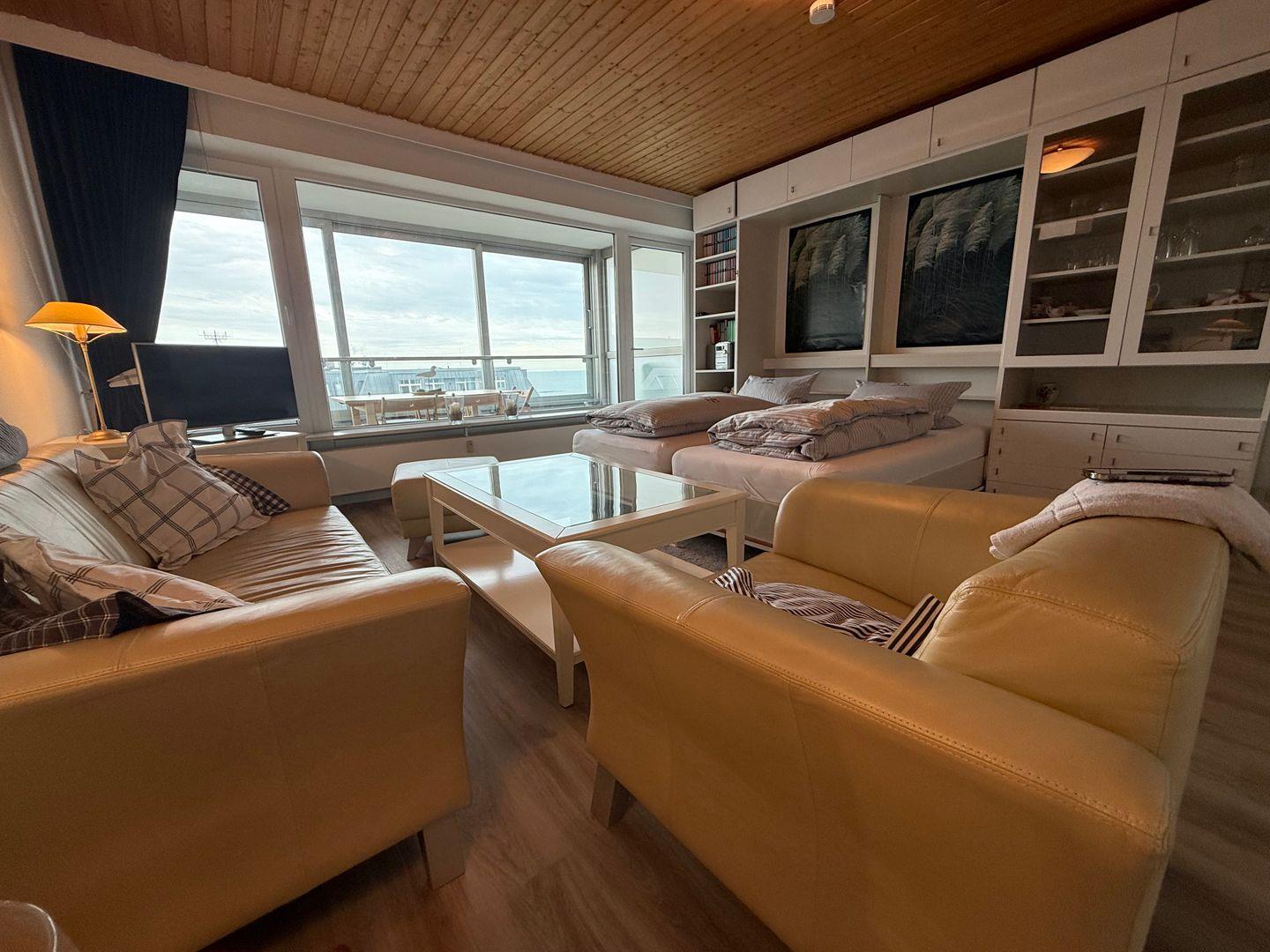 Ein besonderes Highlight ist der geschlossene Balkon, von dem Sie einen guten Blick auf das Meer genießen. Die Unterkunft befindet sich lediglich 40 Meter vom Sandstrand entfernt und ermöglicht somit einen entspannten Zugang zum Wasser. Zudem profitieren Sie von der Nähe zu vielseitigen Freizeitmöglichkeiten wie Beachvolleyball, Wassersport, Surfen, Joggen, Radfahren und Nordic Walking. Auch Golfplätze, Reitangebote, Tennisplätze sowie Touristenattraktionen, Museen, Kino und Massagen sind im Umkreis von einem Kilometer erreichbar.