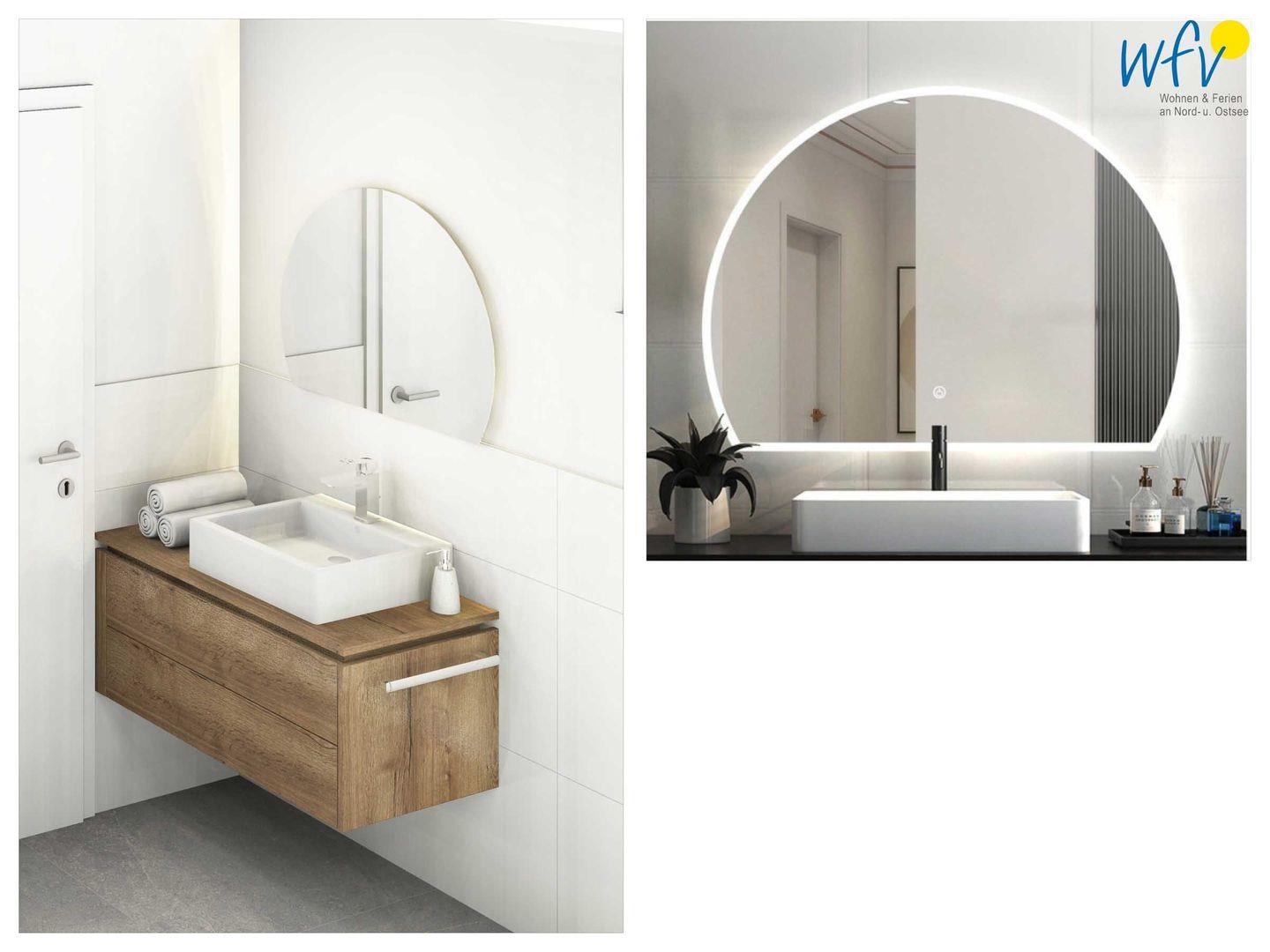 Das elegante Tageslichtbad mit ebenerdiger Dusche lädt zur Erfrischung nach dem Strandtag ein. Ein separates WC entspannt die täglichen Badezimmerroutinen.