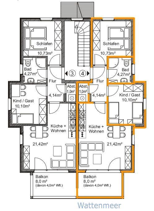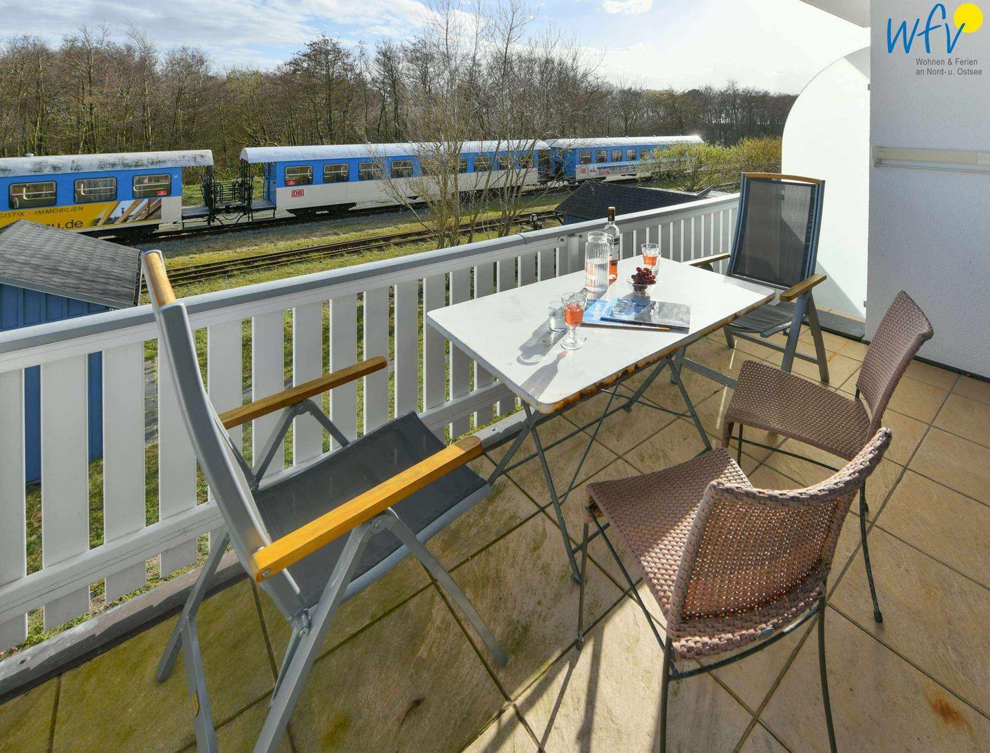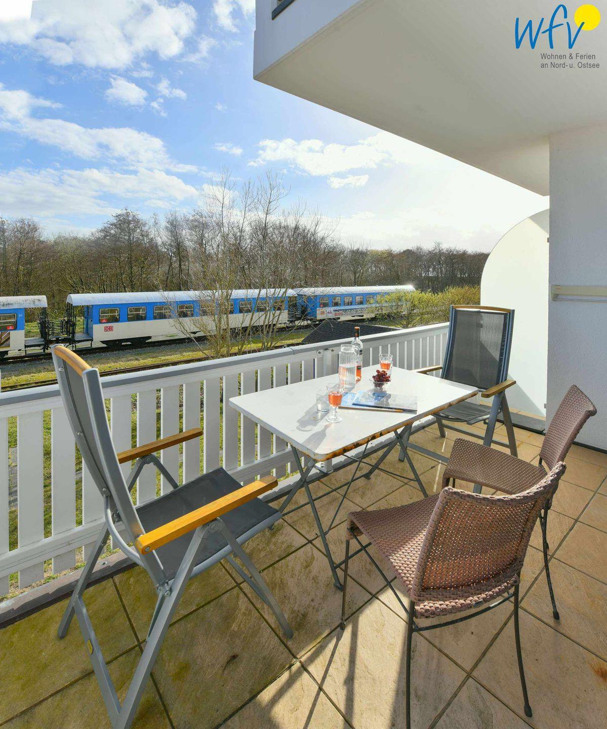 Besonders auf dem großen, teilweise überdachten Süd-Balkon werden Sie sich wunderbar erholen können. Von hier aus genießen den Blick auf ein kleines Wäldchen, hinter dem sich direkt das Wattenmeer bis zum fernen Festland erstreckt.