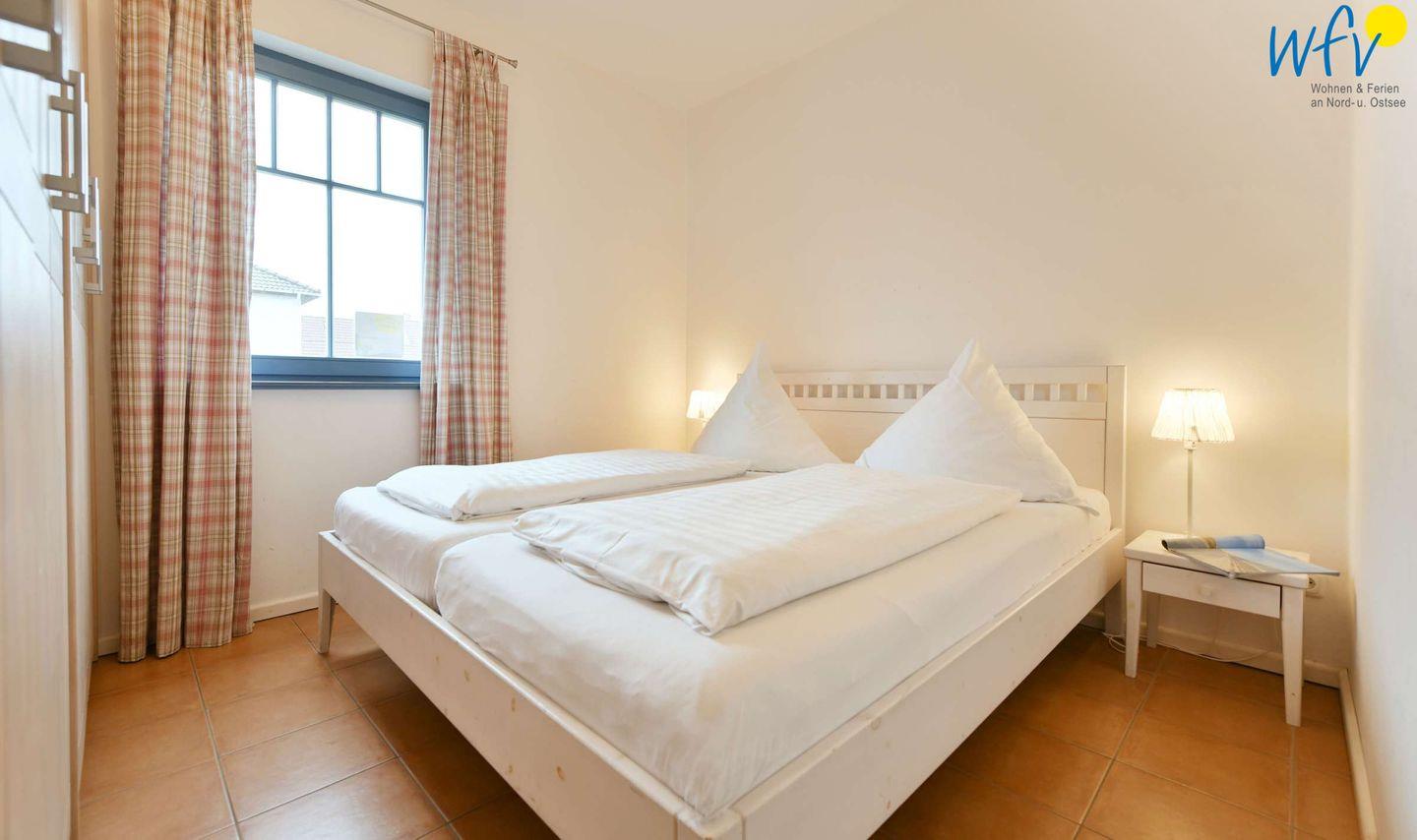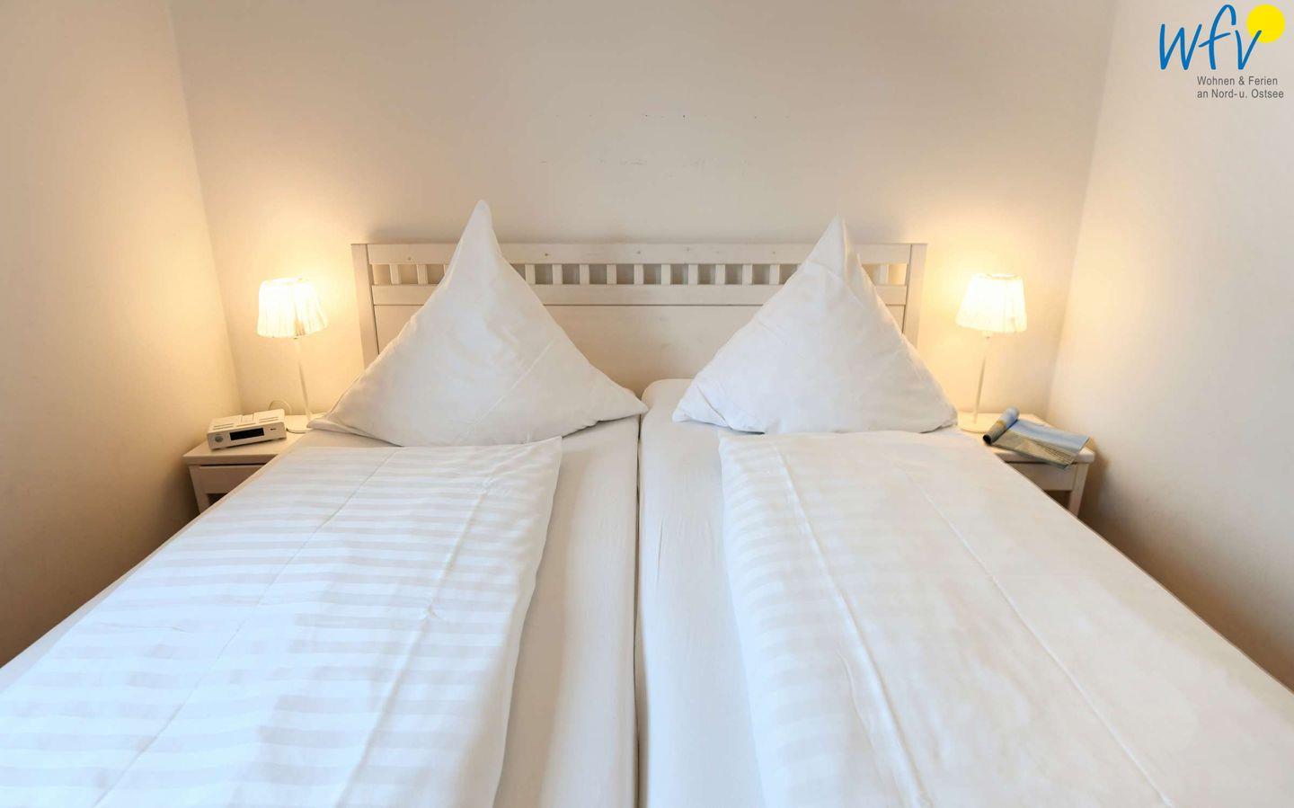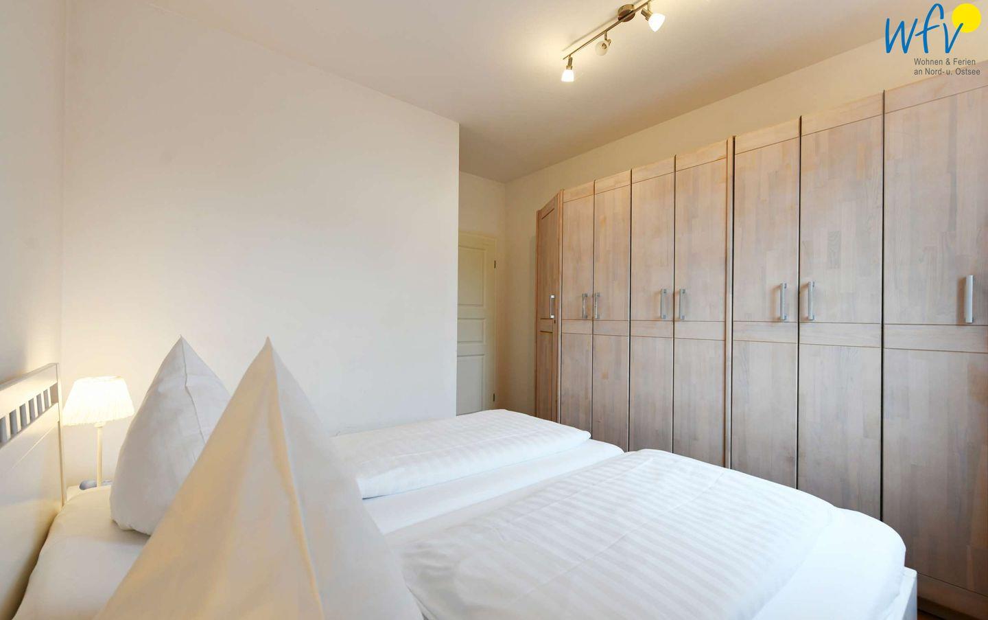 Die zwei separaten Schlafräume dieser Wangerooger Ferienwohnung sind mit einem Doppelbett bzw. zwei Einzelbetten und einem vollwertigen Ausziehbett ausgestattet. Ein Kinderbett und ein Hochstuhl gehören in dieser Ferienwohnung zur festen Ausstattung und stehen Ihnen ohne Aufpreis zur Verfügung.