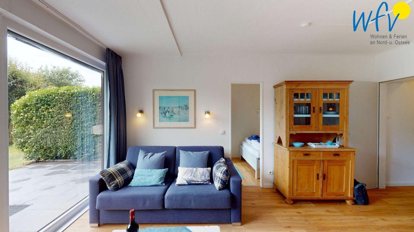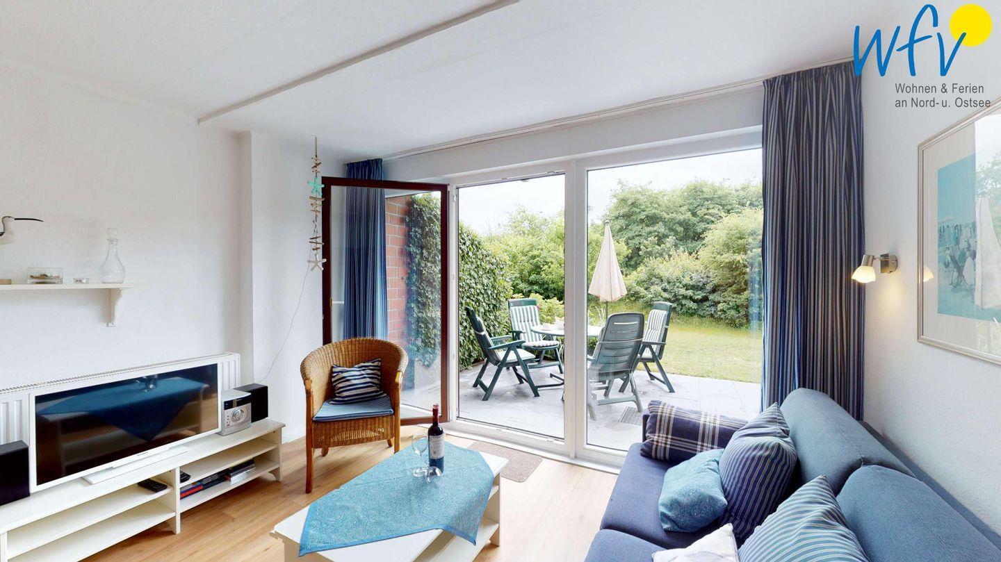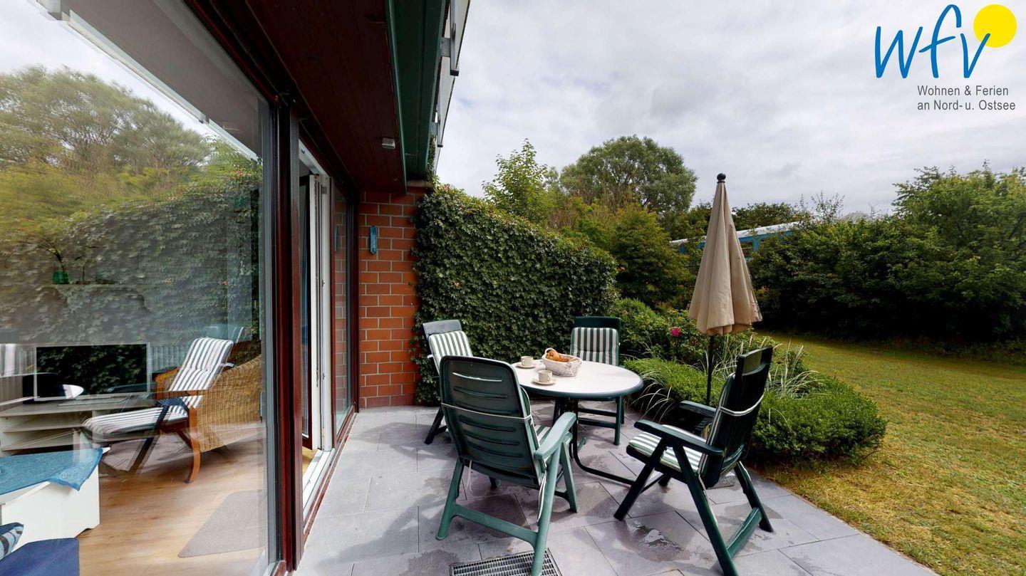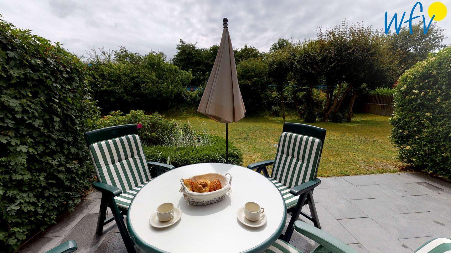 Zum ausgiebigen Entspannen lädt das gemütliche, lichtdurchflutete Wohnzimmer mit Panoramafenster, Essbereich, Couchecke und TV ein. Hier können Sie wunderbar bei offener Terrassentür mit Blick in den Garten zusammensitzen. Oder Sie relaxen im schönen Außenbereich der Ferienwohnung: Auf der windgeschützten Süd-Terrasse mit angrenzendem Garten werden Sie sich wunderbar erholen können. Sich im bequemen Gartenstuhl die Sonne ins Gesicht scheinen zu lassen, ein spannendes Buch zu lesen oder abends bis zum Sonnenuntergang beisammenzusitzen - das sind unvergessliche Urlaubsmomente auf Wangerooge.