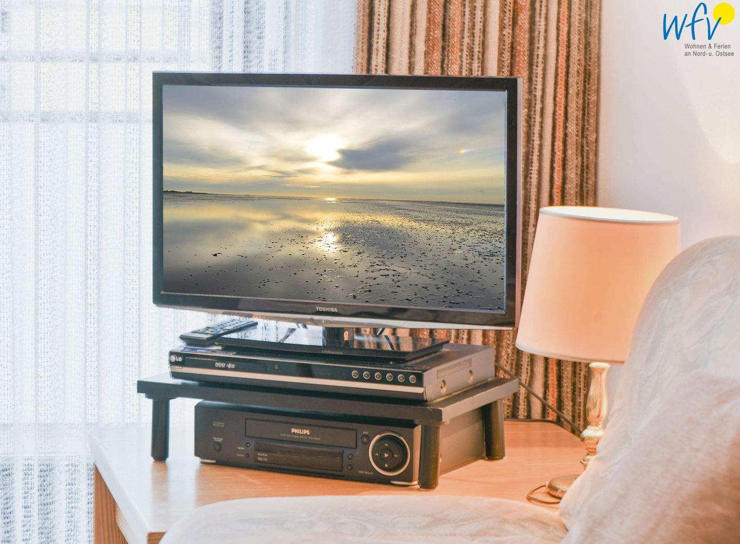 Für gemütliche Zeiten am Abend ist der Wohnraum mit einer Couchecke und einem Fernseher mit DVD-Player ausgestattet.