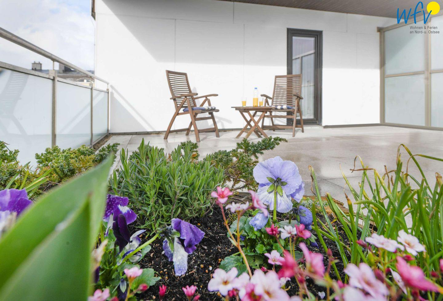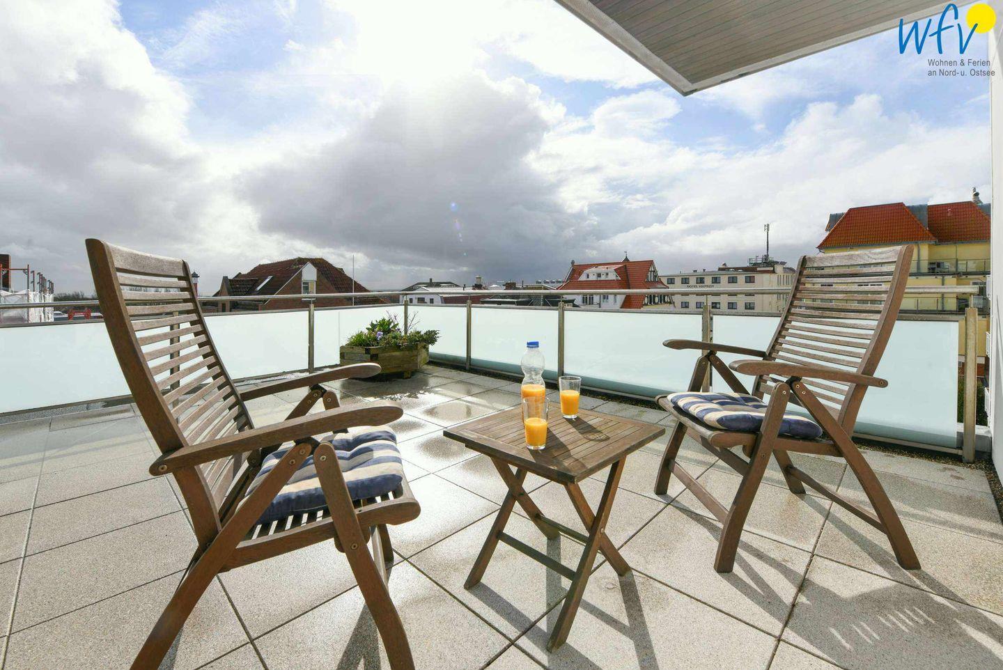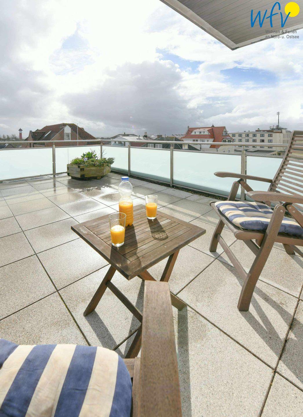 Genießen Sie herrliche Sonnenbäder auf Wangerooge! Die möblierte Dachterrasse der Ferienwohnung garantiert Ihnen Stunden purer Erholung! In nur 5 Minuten erreichen Sie außerdem den Wangerooger Badestrand.
