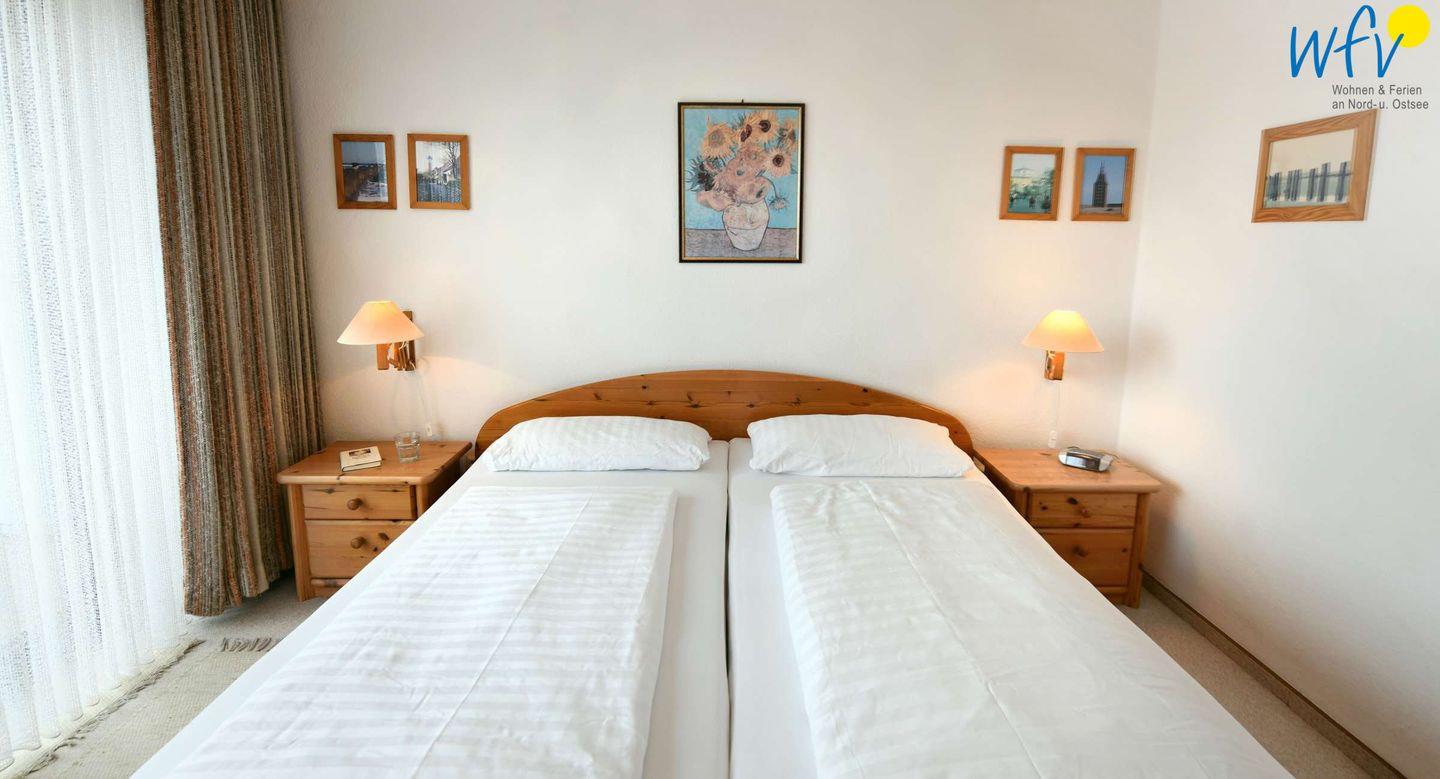 Die Ferienwohnung verfügt über ein separates Schlafzimmer mit Doppelbett mit einem 1,80m und bietet somit Platz für zwei Personen.