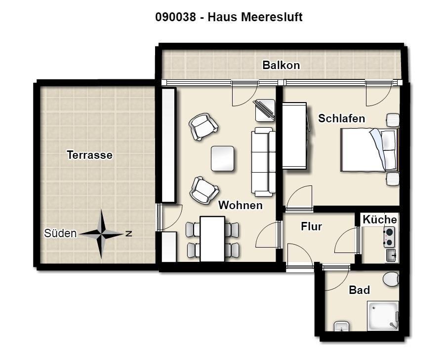 Die Ferienwohnung im „Haus Meeresluft“ liegt im 3. OG und kann über einen Aufzug erreicht werden.