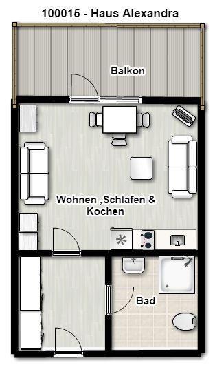 Zu erholsamen Stunden lädt eine bequeme Couch ( 1,70m ) und ein TV ein. Oder sie lesen ein gutes Buch, hören Musik im Radio und lassen auf dem Balkon entspannt den Tag ausklingen. Für die angenehme Nachtruhe können Sie die Couch ganz einfach in ein Schlafsofa umfunktionieren.