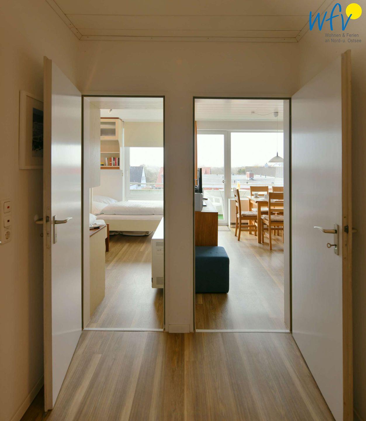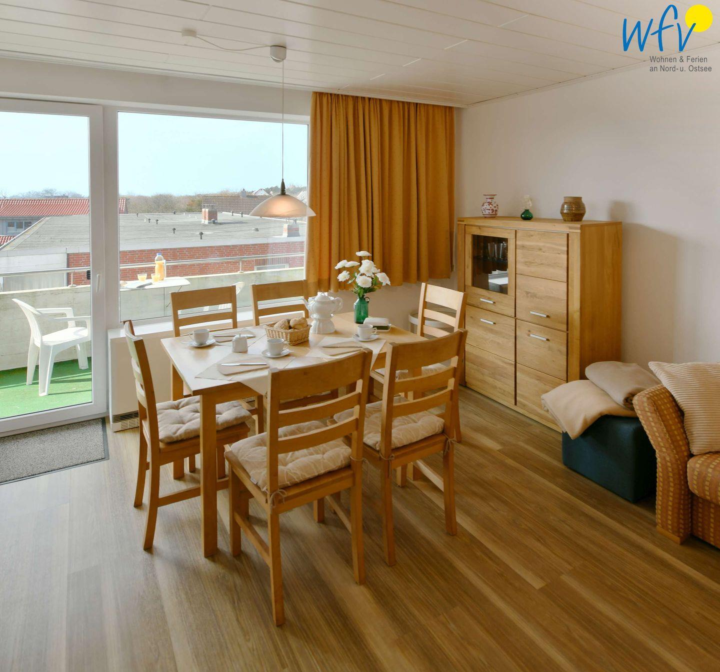 Auf dem möblierten Balkon in westlicher Richtung können Sie besonders am Nachmittag herrlich sonnige Stunden genießen! Von hier aus haben Sie einen schönen Blick auf Wangerooges West- und Leuchtturm!
