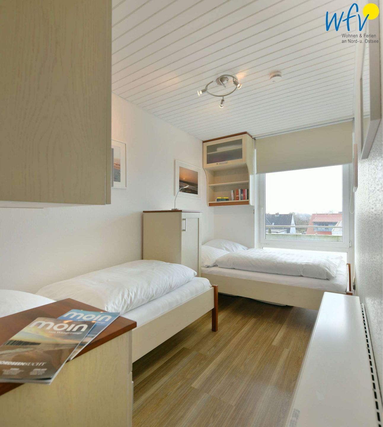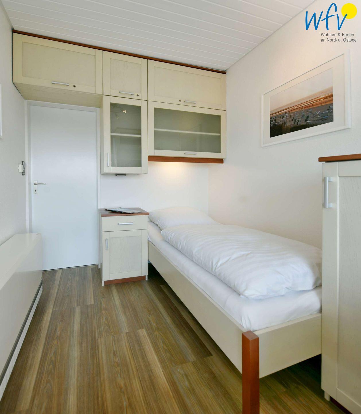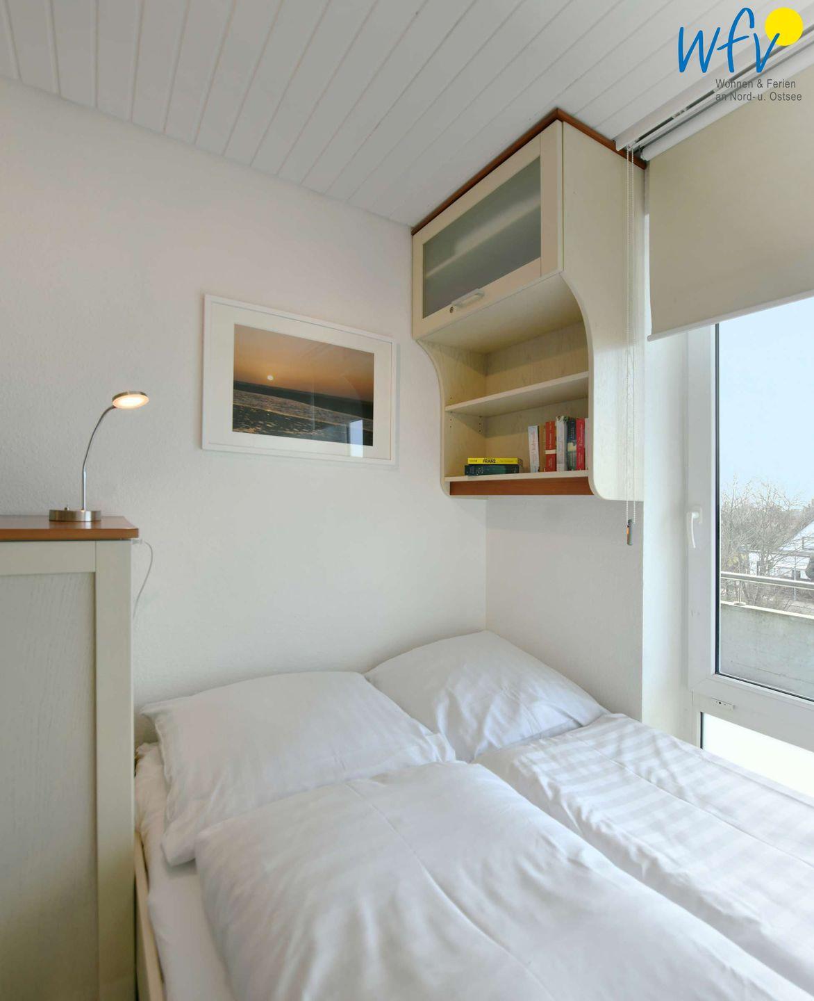 In dem separaten Schlafraum der Ferienwohnung befinden sich ein breites Bett (1,40 m) und ein Einzelbett. Zusätzliche Schlafmöglichkeiten bietet Ihnen die Doppelschlafcouch im Wohnraum.