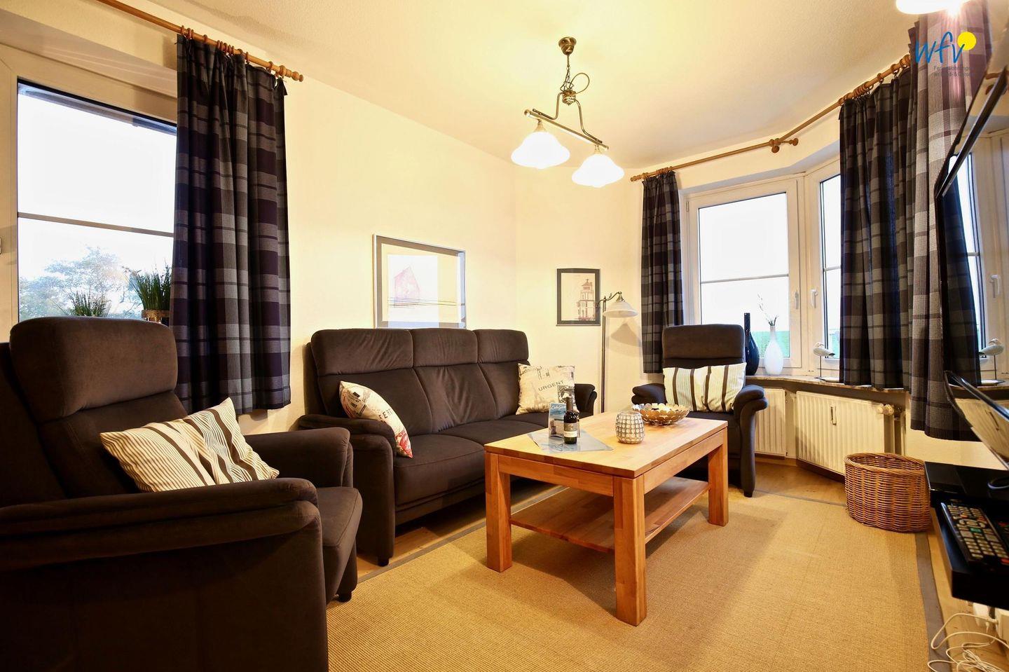 Zu erholsamen Stunden am Abend lädt der gemütliche Wohnraum ein, der mit einer bequemen Sitzecke, modernem TV, DVD-Player und kleiner Musikanlage ausgestattet ist. Hier können ganz in Ruhe gute Filme schauen, Musik hören oder von Ihrem Smartphone aus im Internet surfen - in der Ferienwohnung empfangen Sie kostenlos freies WLAN. Auch ein Telefon ist vorhanden.