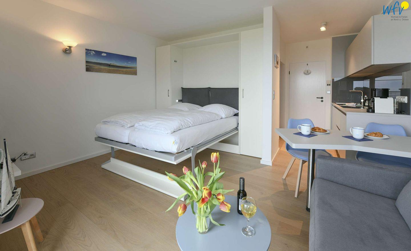 Sie träumen von einem romantischen Urlaub zu zweit? In diesem modernen Ein-Raum-Appartement mit Balkon werden Sie sich auf Wangerooge rundum wohlfühlen!