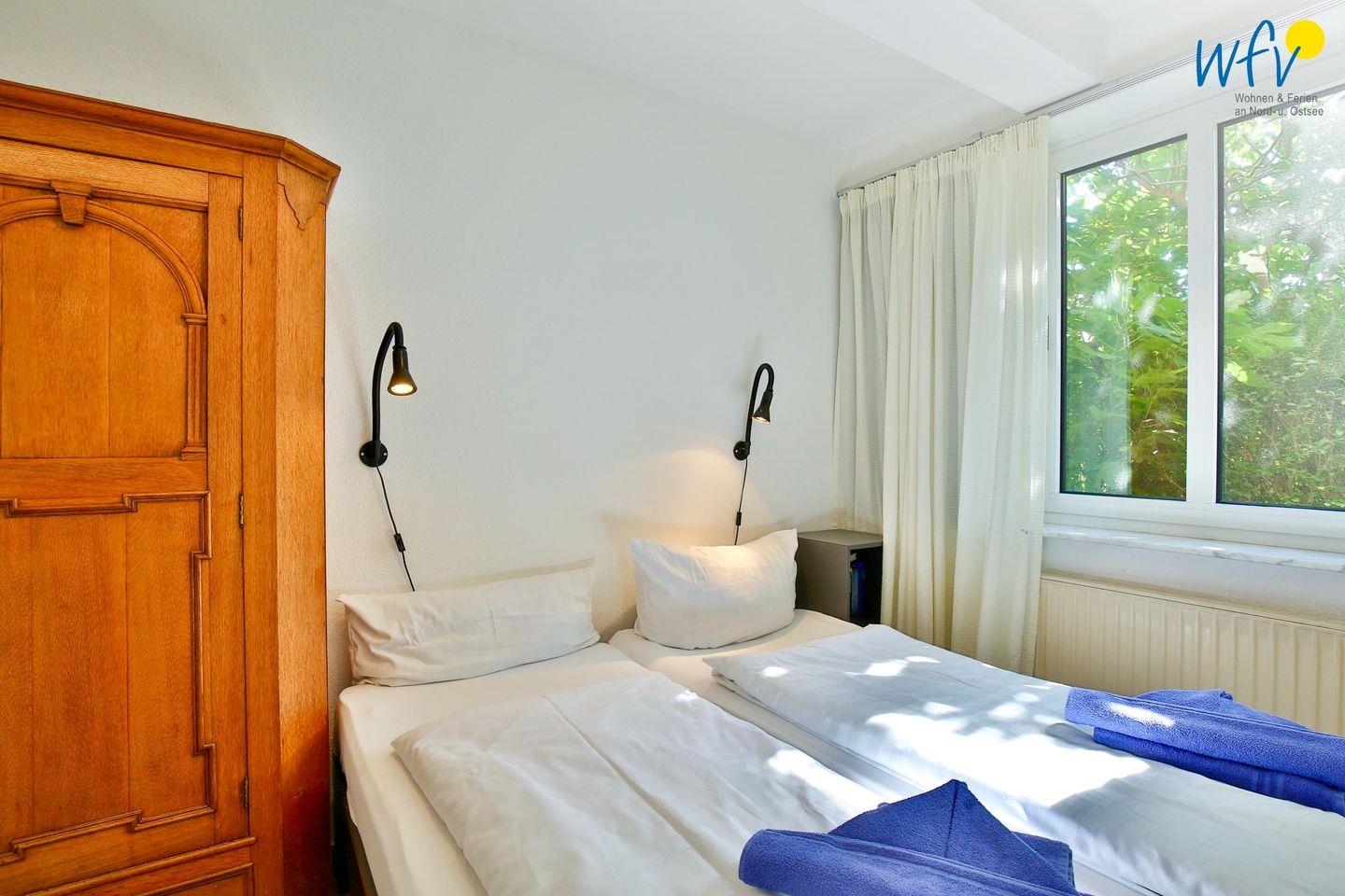 Durch sechs Schlafplätze haben Sie in der Ferienwohnung wunderbare Rückzugsmöglichkeiten. Die zwei separaten Schlafzimmer sind mit einem Doppelbett bzw. einem Etagenbett (mit optionalem Rausfallschutz) und einem Schlafsofa (160 cm breit) ausgestattet. Wahlweise steht außerdem ein Schlafsofa (160 cm breit) im Wohnbereich zur Verfügung.