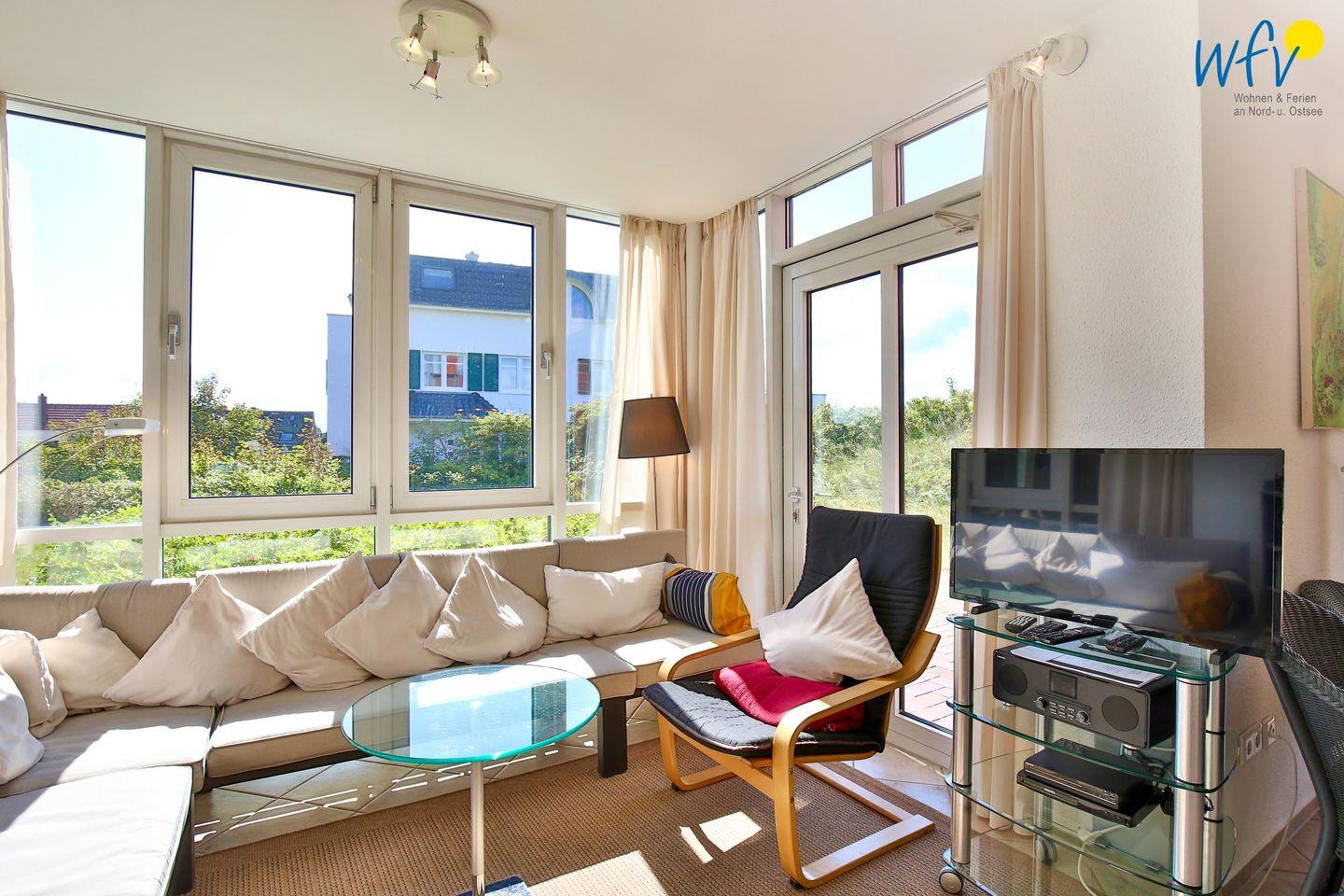 Sonne und frische Nordseeluft buchen Sie in dieser Unterkunft gleich mit! Auf der traumhaften Süd-West-Terrasse können Sie während der Sommerzeit die Sonne ab dem Frühstück bis zum Abendessen kurz vor Sonnenuntergang genießen. Für kühlere Tage besitzt die Ferienwohnung einen tollen verglasten Wintergarten, der sich direkt an das Wohnzimmer anschließt.