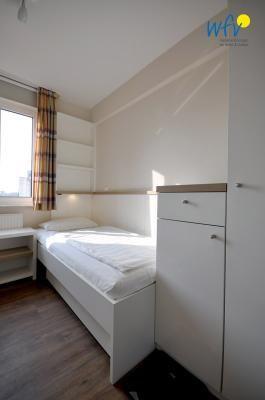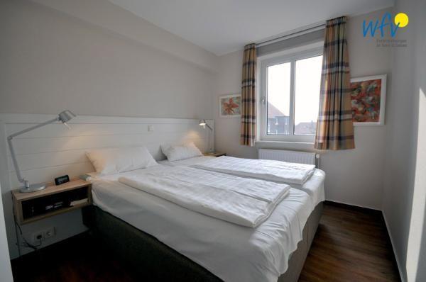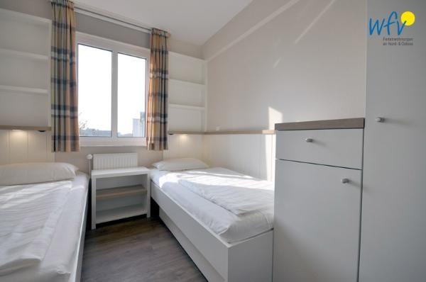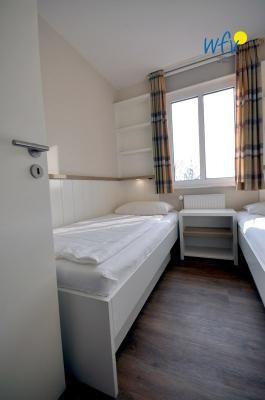 Durch zwei separate Schlafzimmern bestehen angenehme Rückzugsmöglichkeiten. In dem einen Schlafzimmer befindet sich ein Doppelbett, in dem anderen stehen zwei Einzelbetten. In beiden gibt es Kleiderschränke für Ihre Urlaubsgarderobe.