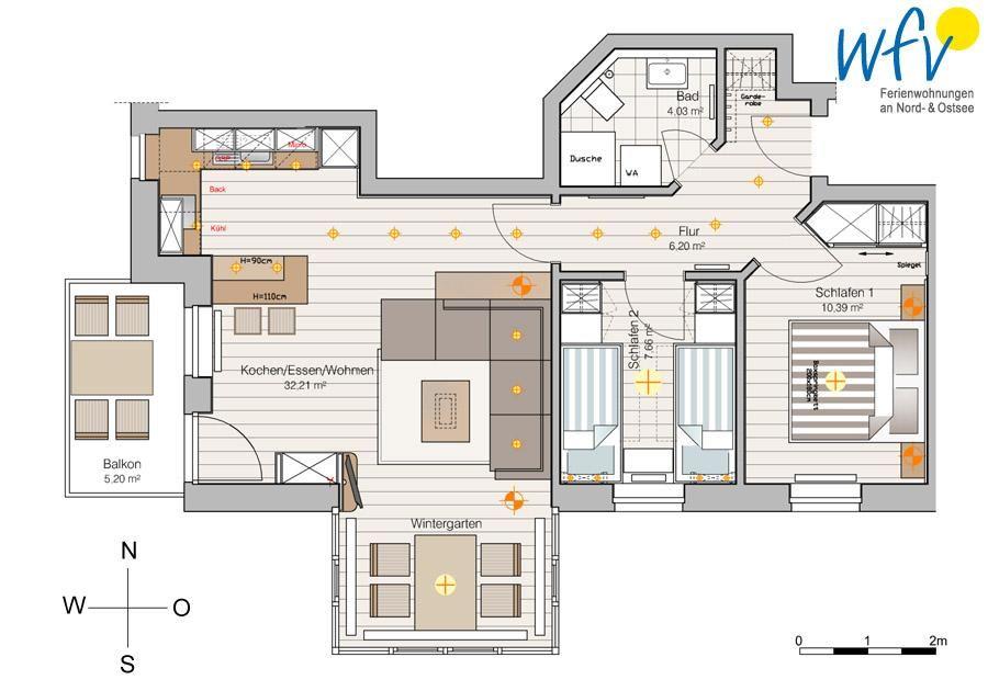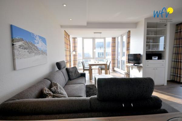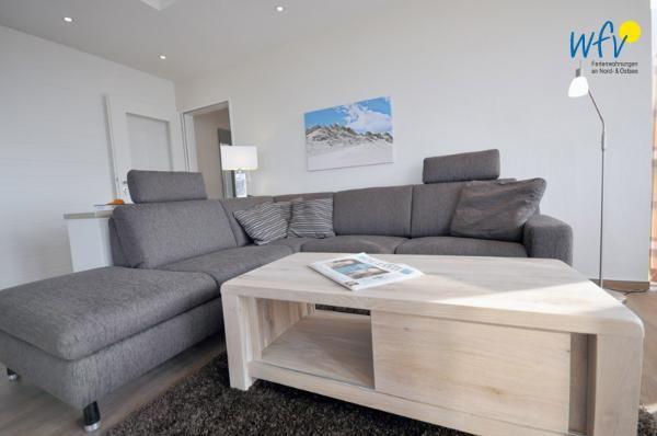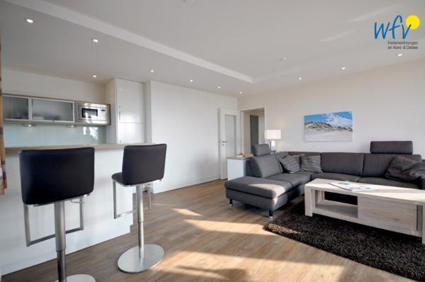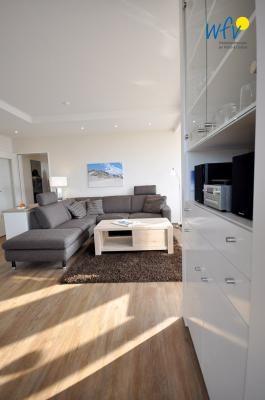 Helle Räume, dezente Farben und stilvolles Mobiliar machen diese Ferienwohnung auf Wangerooge zu einem Wohlfühlort für die ganze Familie. Genießen Sie am Essplatz im voll verglasten Wintergarten einen herrlichen Blick nach draußen! Da bekommt man bereits beim Frühstück Lust, Ausflüge für den Urlaubstag zu planen!