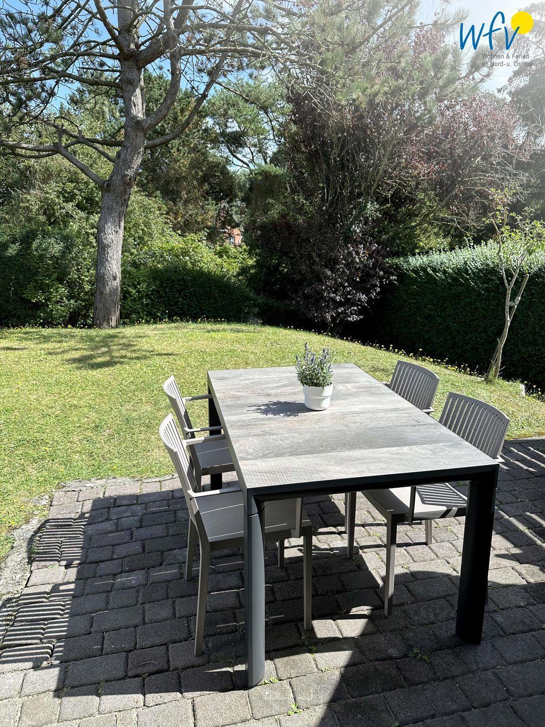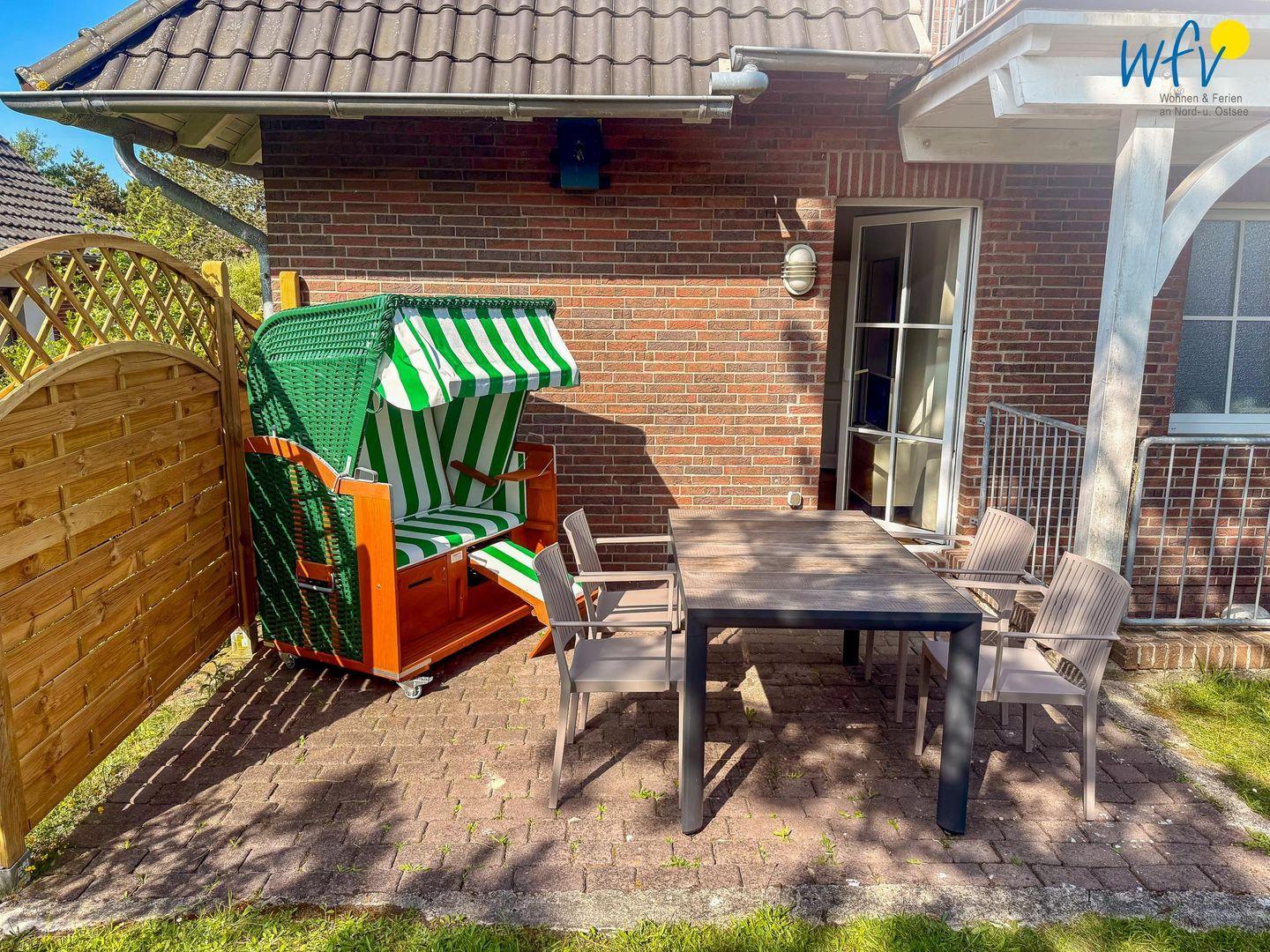 Träumen Sie von Nordseeluft und warmen Sonnenstrahlen? Die Richtung Osten liegende Ferienwohnung besitzt eine wunderschöne Terrasse mit Strandkorb für erholsame Stunden. Hier ganz in Ruhe ein gutes Buch zu lesen oder einfach mal die Seele baumeln zu lassen ist ein wunderbares Urlaubsgefühl!