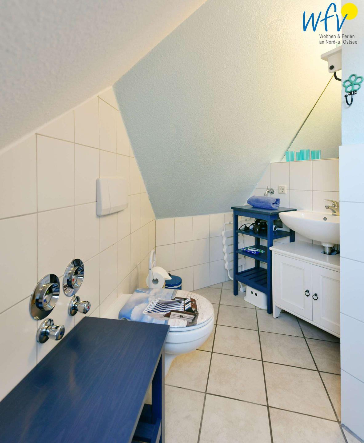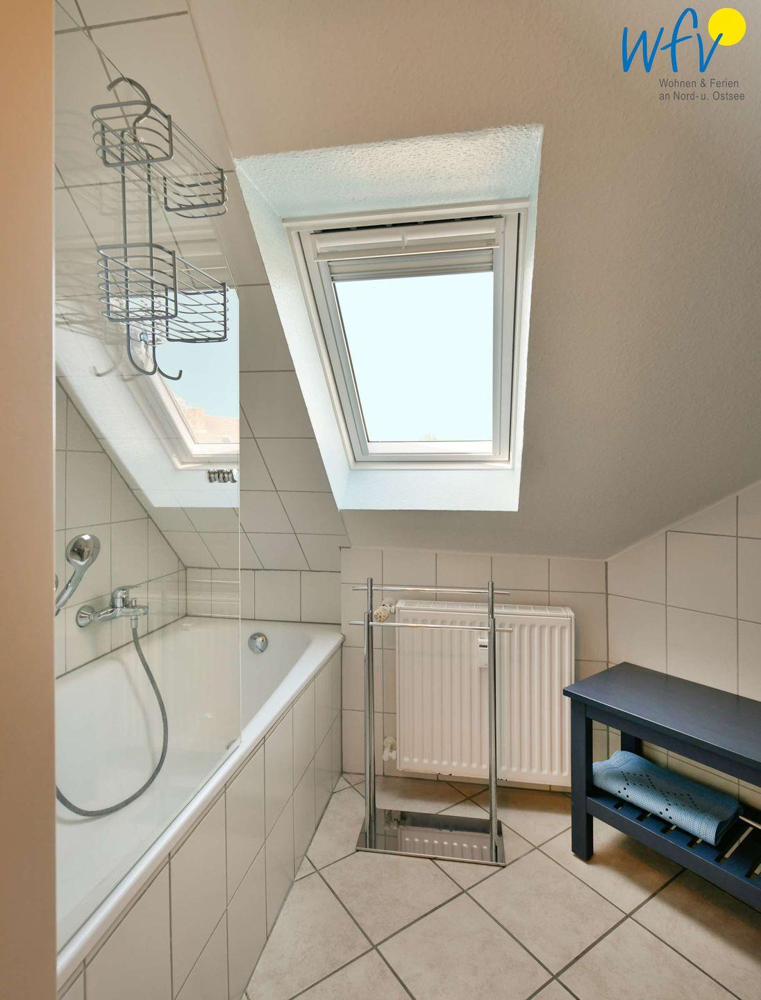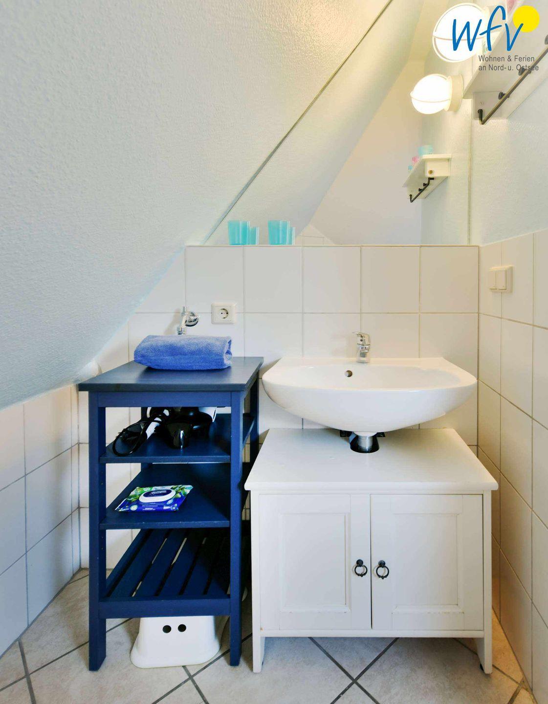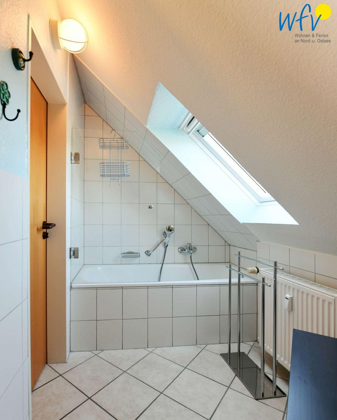 Für wohltuende Schaumbäder nach ausgiebigen Strandspaziergängen verfügt das Bad der Ferienwohnung „Inselnest“ über eine Badewanne.