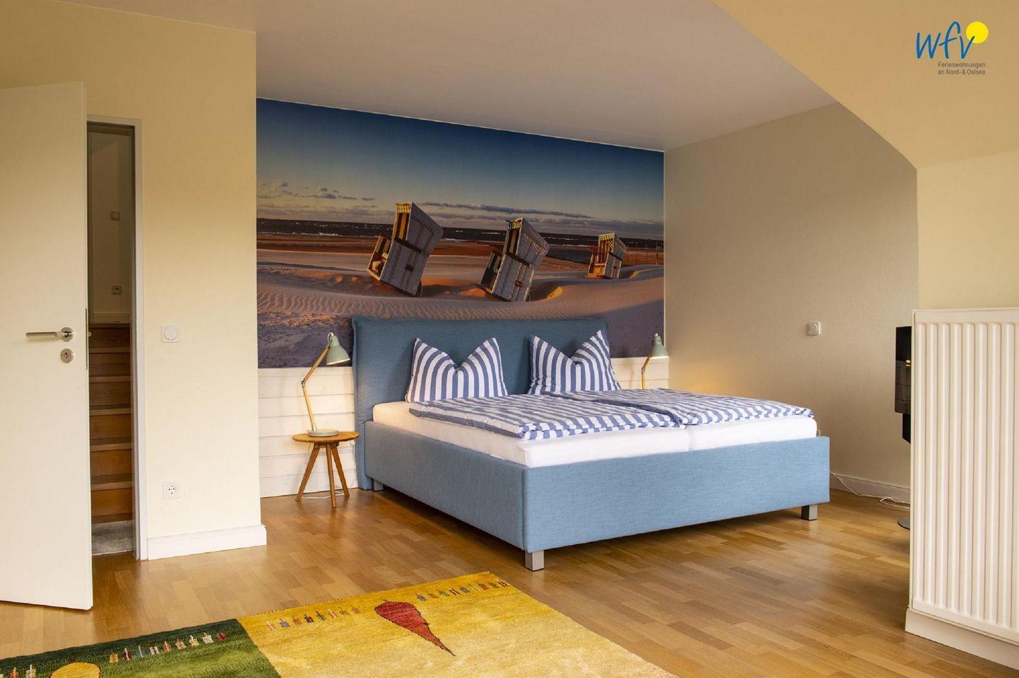 Durch vier separate Schlafzimmer bestehen im "Haus im Süden" angenehme Rückzugsmöglichkeiten. Drei der Zimmer sind jeweils mit einem Doppelbett ausgestattet. In einem weiteren Schlafraum befinden sich zwei Einzelbetten (90x200 cm), die als moderne originelle Kojen angefertigt wurden und somit besonders Kindern einen wunderschönen Schlafbereich bieten. Für alle Betten wurden spezielle Allergikermatratzen angeschafft.