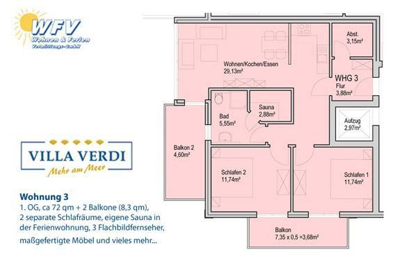 Besonders schön sind die beiden Balkone in Richtung Süden und Westen. Ausgiebige Sonnenbäder und Stunden voller Entspannung sind hier garantiert!