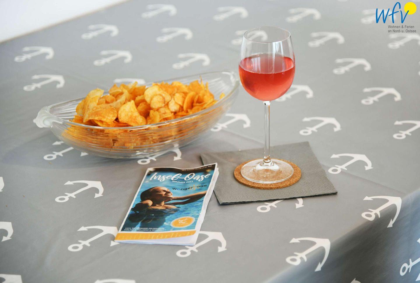 Das Ferienfrühstück und den Snack für zwischendurch können Sie bequem in der Küchenzeile zubereiten! Auch ein leckeres Abendessen lässt sich hier mit einem 2-Plattenherd sowie einer Mikrowelle mit Brat- und Backfunktion zaubern und an dem schönen Esstisch gemeinsam genießen. Oder Sie gehen auswärts essen: Direkt vor Ihrer Haustür befinden sich gemütliche Cafès und Restaurants - teilweise mit sonnigen Terrassen und Meerblick!