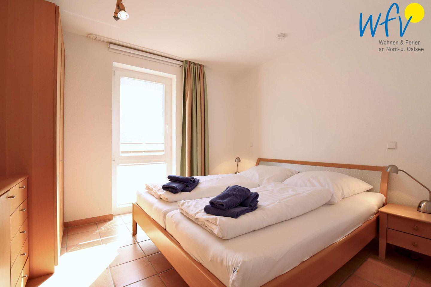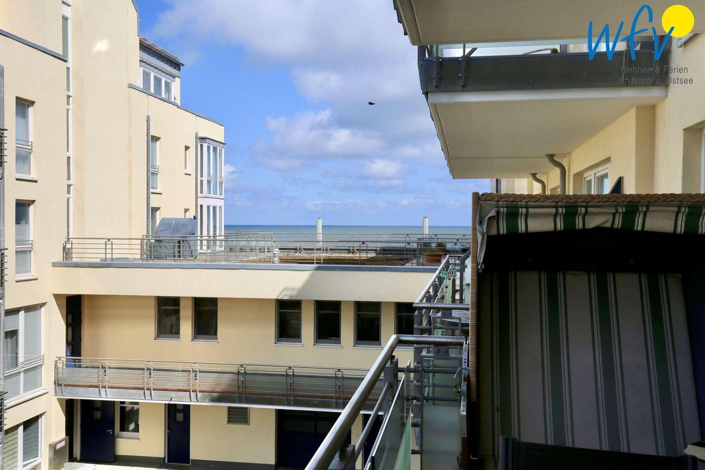 Vom Wohnzimmer aus gelangen Sie direkt auf den schönen West-Balkon der Ferienwohnung. Hier wartet bereits ein Strandkorb auf Sie - wunderbar zum Lesen oder zum Relaxen!