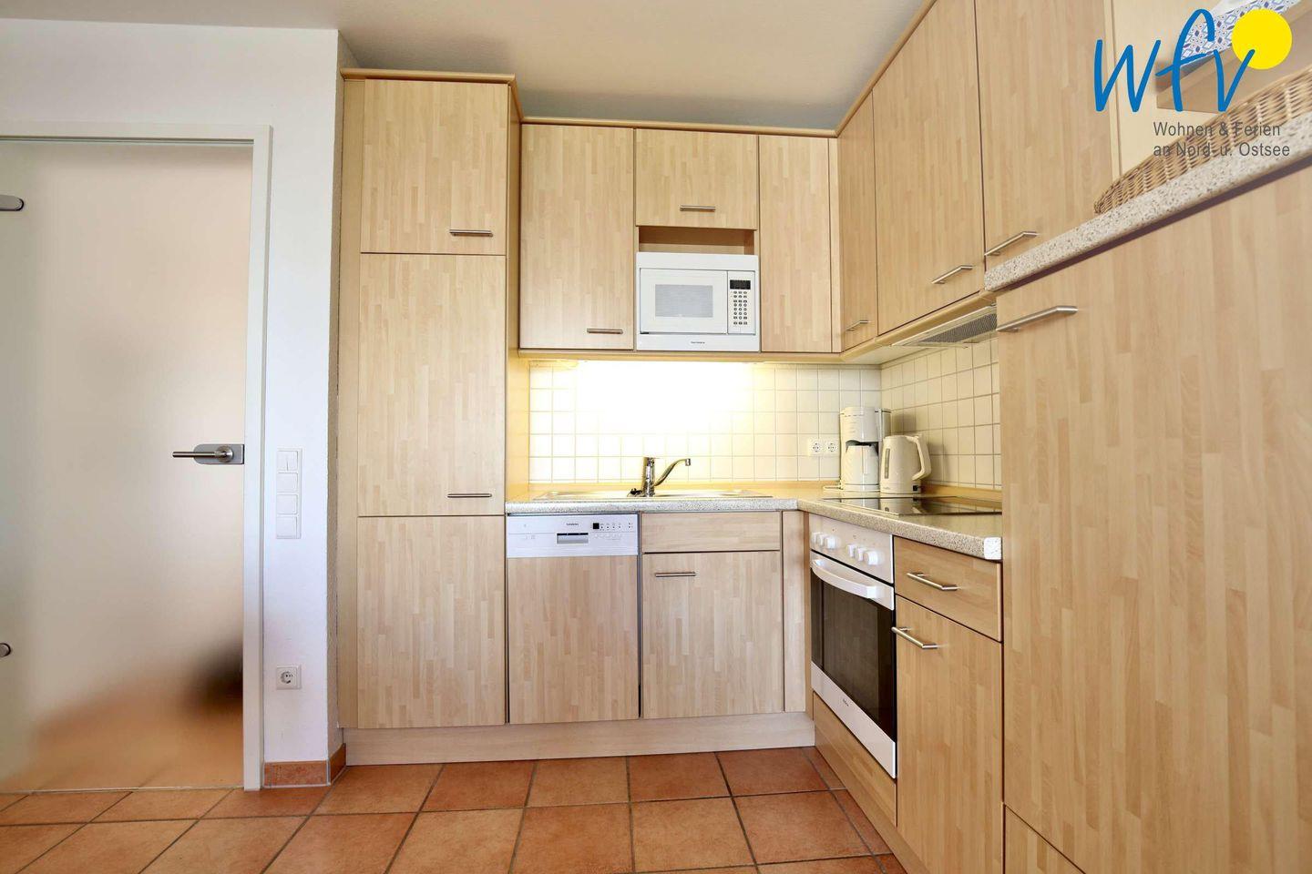 In der offenen Küche mit integriertem Essbereich lassen sich einfach und bequem leckere Gerichte zubereiten. Sie ist u.a. mit Geschirrspüler, Mikrowelle und Backofen mit Ceranfeld ausgestattet. Oder Sie lassen sich verwöhnen und speisen auf der tollen Meerblickterrasse des hauseigenen Restaurants "Krüsch"! Auf der Terrasse in direkter Promenaden- und Strandnähe genießen Sie herrliche Stunden mit Meeresbrise.