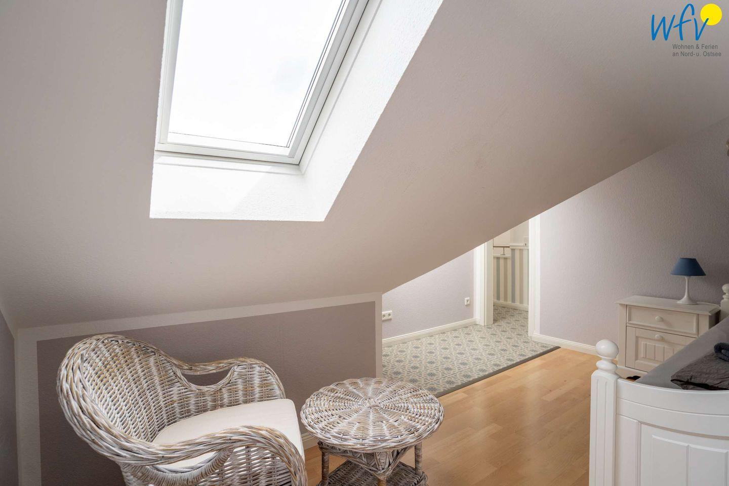 Die große Dachterrasse Richtung Westen bekommt auch Sonne von Süden und lädt zum ausgiebigen Sonnenbad ein. Von hier aus haben Sie sowohl einen herrlichen Blick auf das Meer und den Strand, als auch auf den Alten Leuchtturm und das Wattenmeer sowie Richtung Hafen.