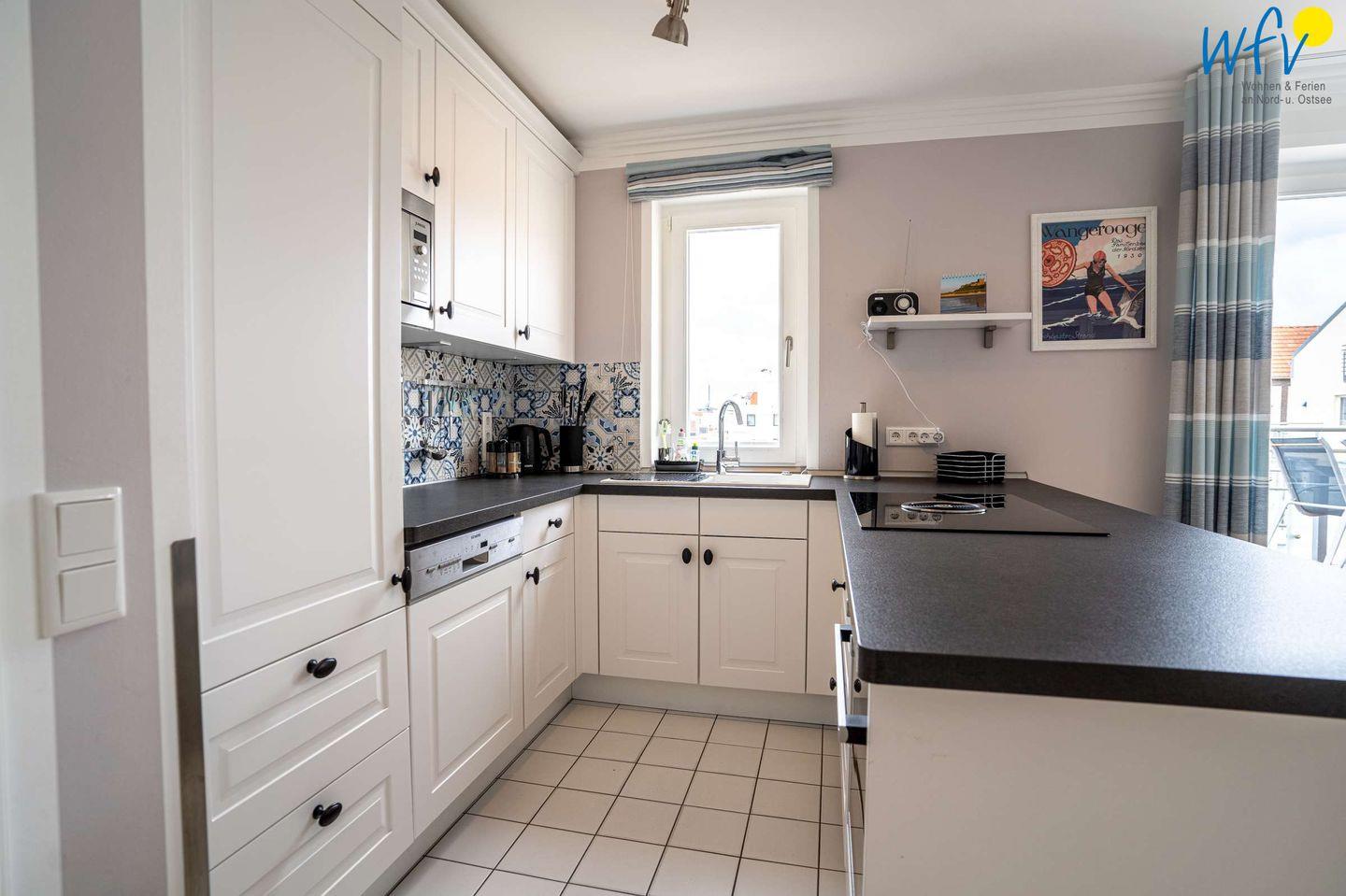 Die komfortable und vollausgestattete Küche - u.a. mit Cerankochfeld, Bora-Dunstabzug, Geschirrspüler und Backofen - lässt Sie auch im Urlaub zu Gourmets werden. An dem großen Esstisch können Sie gemeinsam klönen und genießen. Oder Sie lassen sich verwöhnen und speisen auf der schönen Meerblickterrasse des hauseigenen Restaurants "Krüsch". Auf der Terrasse in direkter Promenaden- und Strandnähe genießen Sie herrliche Stunden mit Meeresbrise.