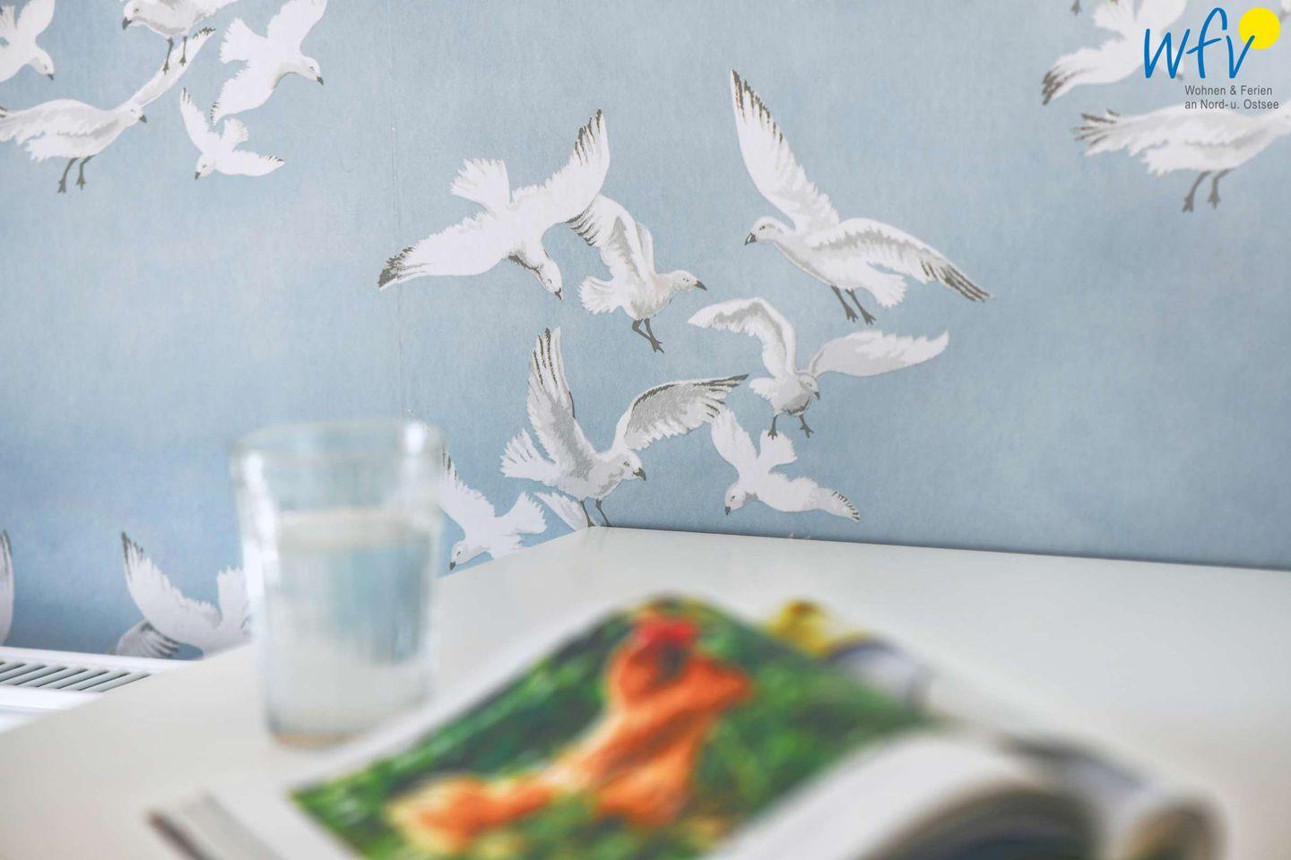 Das Elternschlafzimmer ist groß und gemütlich. Das maßgeschneiderte Bett, der SmartTV sowie der direkte Zugang zum Balkon lassen Sie entspannte Tage verbringen. Das Kinderzimmer mit passgenauem Etagenbett und einem kleinen Maltisch für Kinder sowie Möwentapete und Zugang zum Balkon lässt auch die "Kleinen" den Urlaub nicht so schnell vergessen.