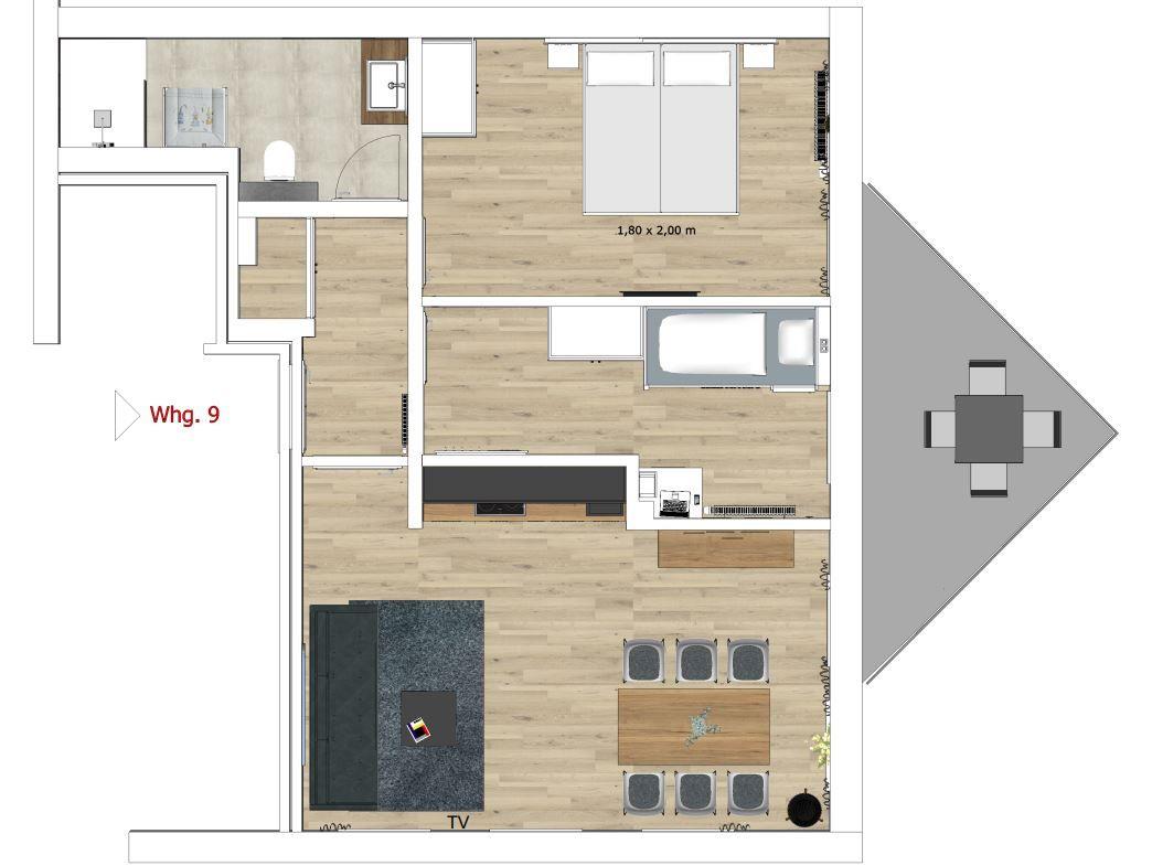 Ein weiteres Highlight ist das Badezimmer. Die große Dusche, der passgenaue Waschtisch und die fein abgestimmte Beleuchtung machen richtig Spaß. Eine Waschmaschine steht zur Verfügung.