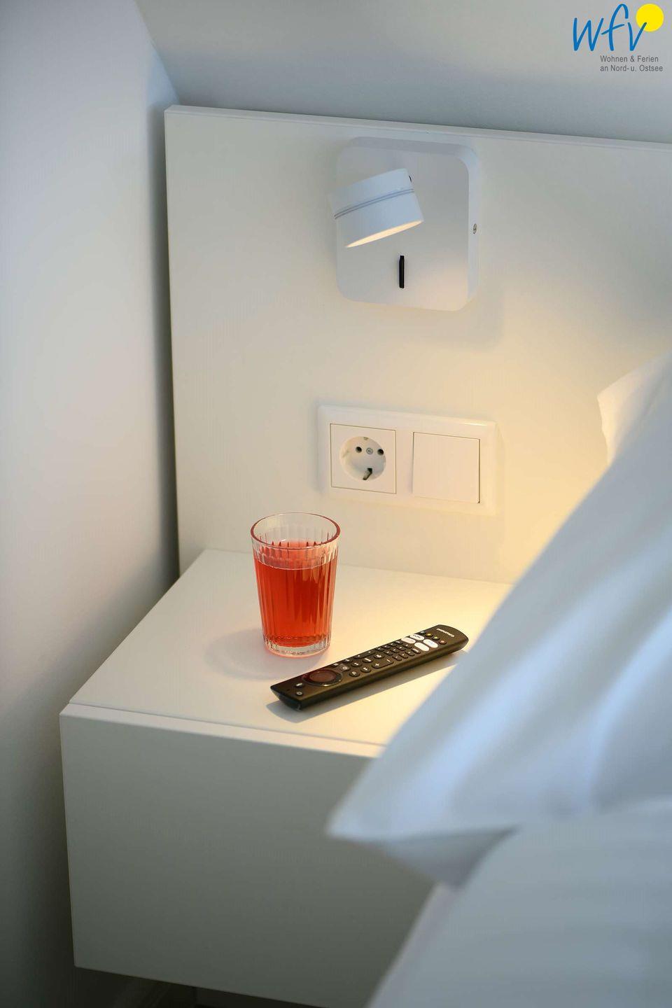Ein kleiner praktischer Abstellraum bietet Platz für Ihre Koffer, Staubsauger und den Wäscheständer. Die Urlaubsgarderobe kann in den Ausziehfächern der Betten verstaut werden. Durch herrlich große Fenster und dem damit verbundenen Lichteinfall besitzt die Galerie eine besonders schöne Atmosphäre. Vom Doppelbett aus können Sie den Alten Leuchtturm sehen.
