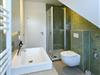 Weiteren Wohnkomfort bietet Ihnen das gepflegte Duschbad in exquisitem Design: Metrofliesen an der Wand, Bodenfliesen in Betonoptik, ein passgenauer Unterschrank vom Tischler und ein hinterleuchteter Spiegel machen auch diesen Raum zu einem Wohlfühlort. Eine Waschmaschine steht zur Verfügung.