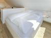 Das untere separate Schlafzimmer mit Doppelbett und direktem Balkonzugang ist elegant und schlicht gehalten. Genau richtig, um zu entspannen. Ein Einbauschrank verstaut die Urlaubsgarderobe und auch hier kann auf dem SmartTV ein Film geschaut werden.