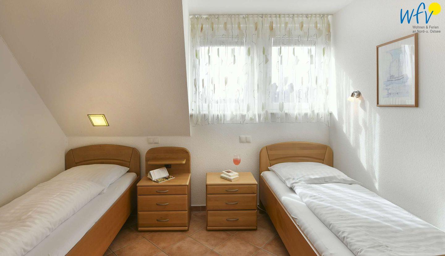 Drei separate Schlafzimmer verteilen sich auf beide Ebenen - ein Zimmer ist mit einem Doppelbett eingerichtet, die beiden anderen Zimmer mit jeweils zwei Einzelbetten. Auf der zweiten Etage befindet sich außerdem ein kleiner Schreibtisch mit bequemem Bürostuhl. So können Sie sich für kleine Arbeiten oder zum Mails checken vom Smartphone aus gerne zurückziehen. Sie empfangen kostenlos freies WLAN.