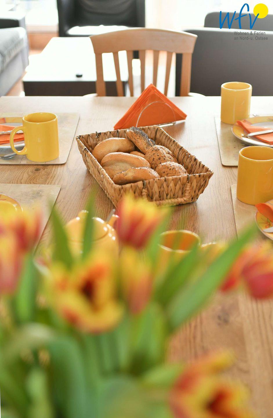 Ausgiebige Kochabende machen in der offenen, modernen und vollausgestatteten Einbauküche richtig Spaß! Auf dem Herd brutzelt der frische Nordseefisch, im Ofen backen die Kroketten. Den Abwasch erledigt für Sie die Spülmaschine.