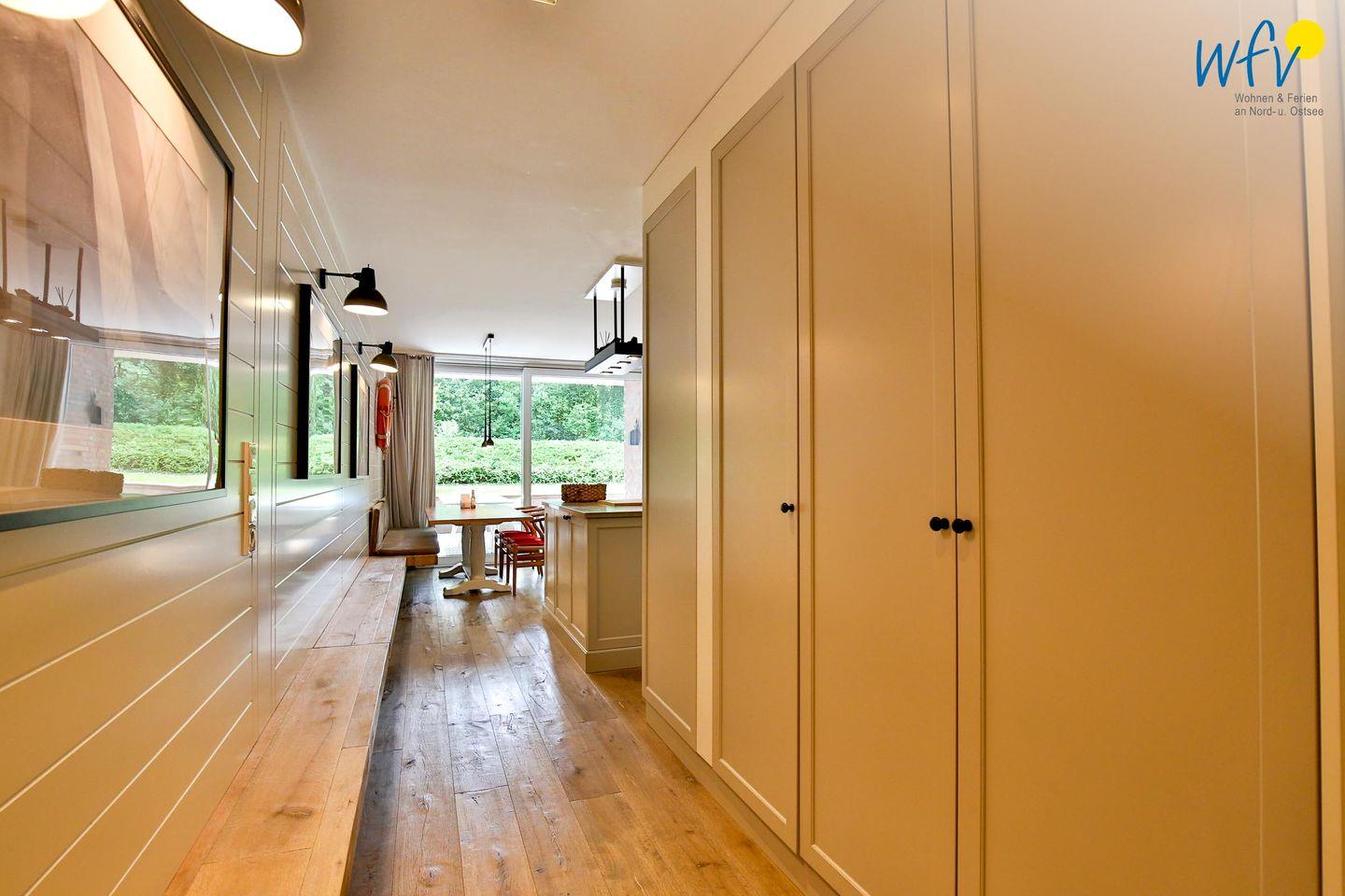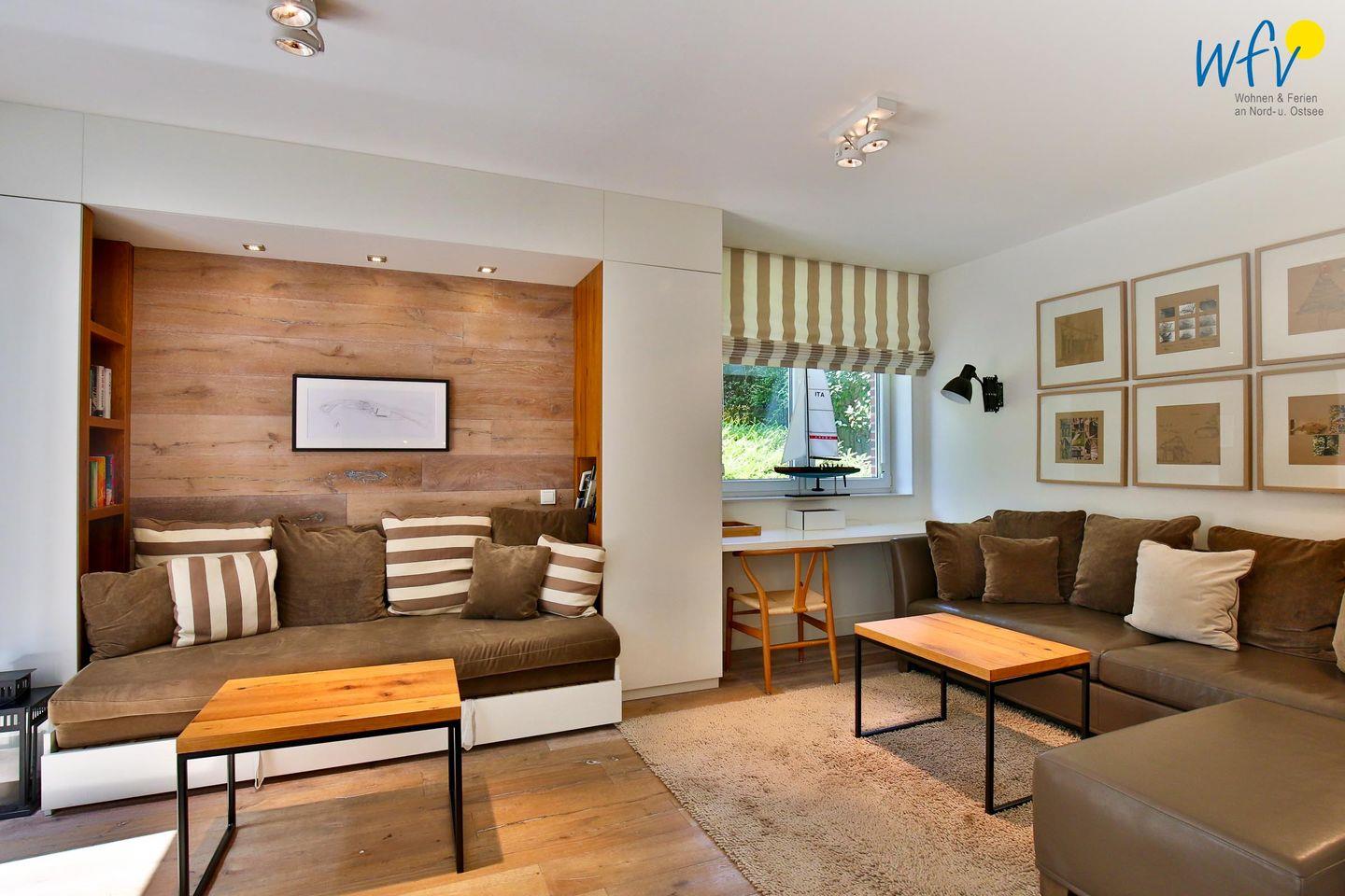 Stilvoll, komfortabel und in schönster Einrichtung - so wohnen Sie in dieser modernen Ferienwohnung auf Wangerooge! Helle Holzdielen und weiße Wandvertäfelungen verleihen der Ferienwohnung einen hochwertigen und gemütlichen Charakter.