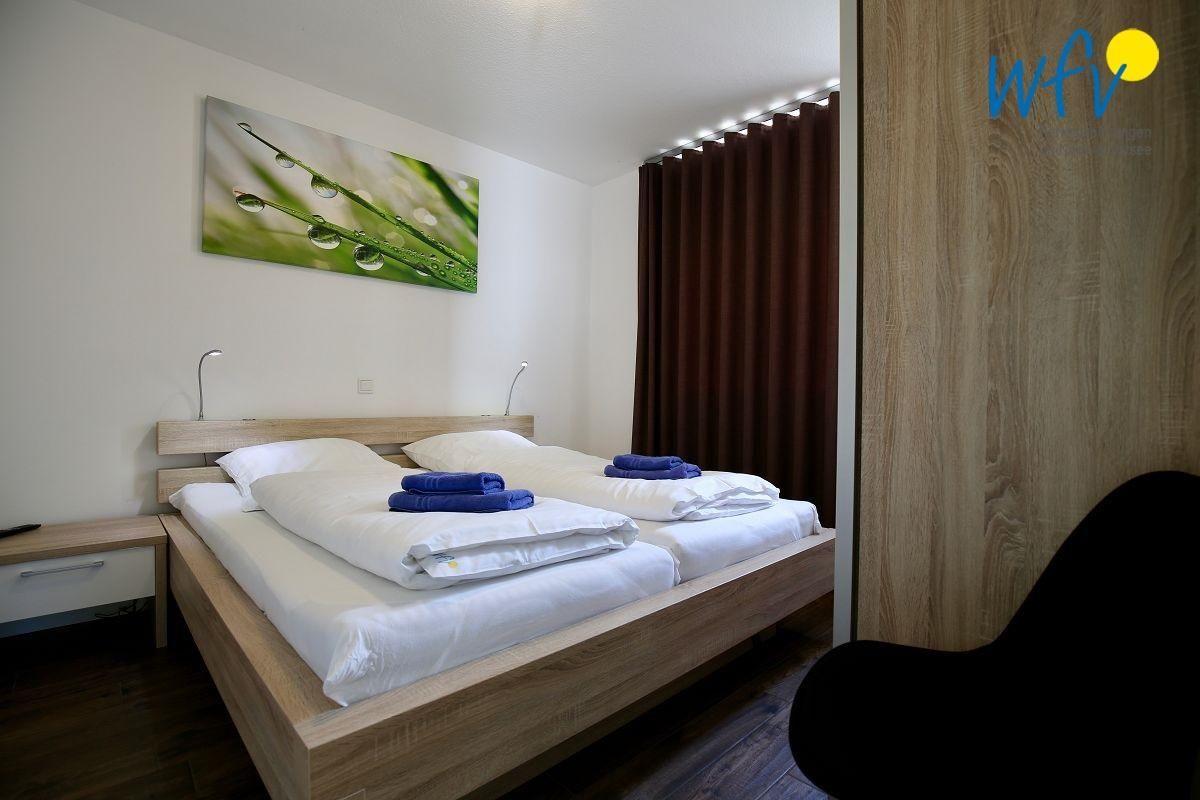 Zwei separate Schlafzimmer mit Doppelbetten sowie ein ausziehbares Schlafsofa bieten Platz für bis zu sechs Personen.