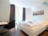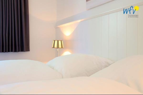 Die optimale Aufteilung der Ferienwohnung mit zwei separaten Schlafzimmern (mit komfortablen Doppelbetten) und einem Schlafsofa für zwei Personen im Wohnzimmer bietet bspw. einer oder zwei Familien mit Kindern ausreichend Platz. Die Schlafzimmer sind jeweils mit Flatscreens ausgestattet.