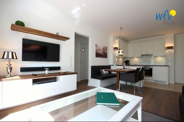 Unsere Ferienwohnung auf Wangerooge ist im modernen Landhausstil eingerichtet und besitzt dadurch eine sehr freundliche Atmosphäre. An kühleren Tagen sorgt eine Fußbodenheizung für die wohlige Wärme zum Wohlfühlen. Durch hochwertige Fliesen ist die Ferienwohnung auch für Allergiker ein erholsamer Urlaubsort.
