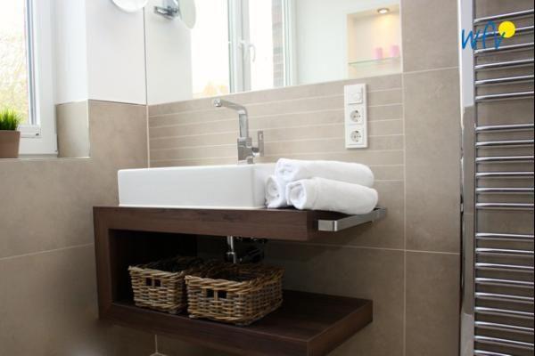 Auch das moderne Badezimmer mit natürlicher Beleuchtung, hochwertigen Amaturen und ebenerdiger Dusche lädt zum Wohlfühlen ein.