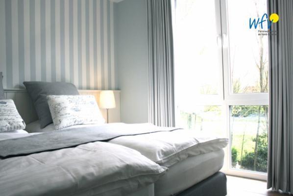 Die zwei separaten gemütlichen Schlafzimmer der Ferienwohnung verfügen über komfortable Boxspringbetten (1 Doppelbett und 2 Einzelbetten) sowie Flatscreens.
