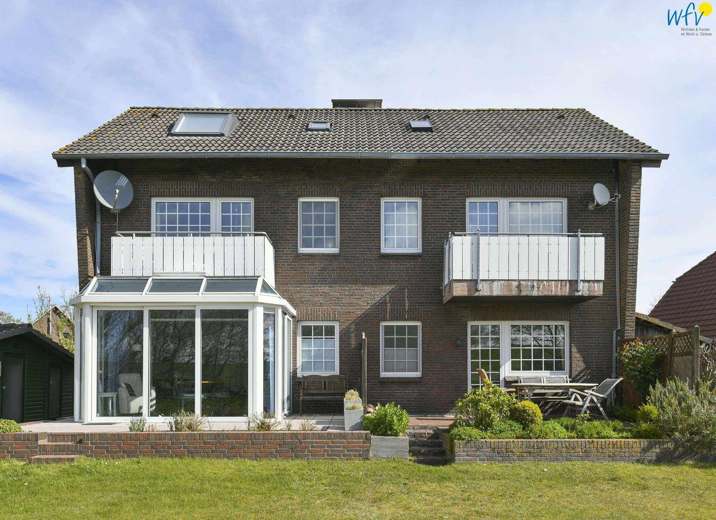 Die bequeme Couchecke mit Satellit-TV (Flachbildschirm), DVD-Player und Stereoanlage lädt zum ausgiebigen Entspannen ein. Vom Esstisch aus genießen Sie einen schönen Blick auf den Deich. Und auch auf dem sonnigen Südbalkon mit herrlichem Ausblick ins Grüne werden Sie sich rundum wohlfühlen - der perfekte Ort für Erholung an der frischen Nordseeluft!