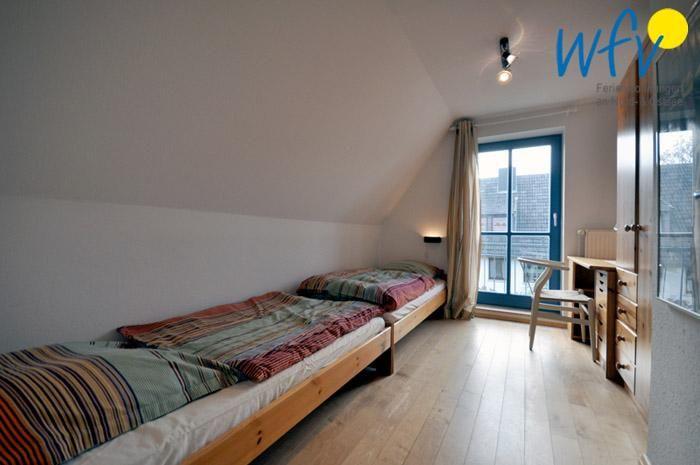 Das "Ferienhaus Friesenblick“ erstreckt sich über zwei Etagen. Die drei separaten Schlafzimmer befinden sich im Obergeschoss und sind mit einem Doppelbett bzw. jeweils mit zwei Einzelbetten ausgestattet. Zwei der Schlafzimmer verfügen über einen Fernseher.