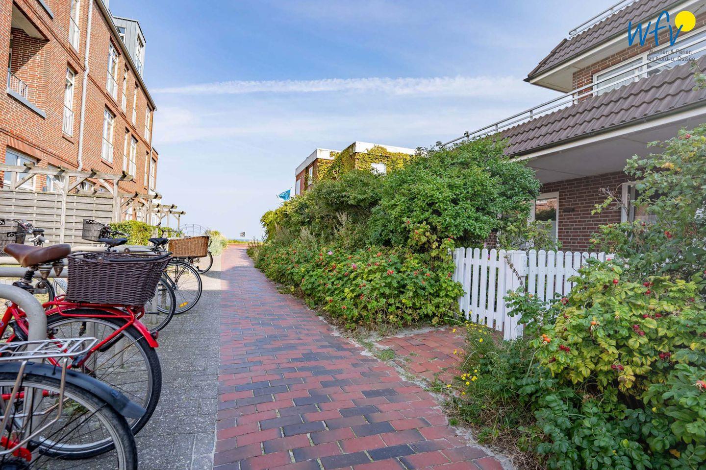 Das "Haus Strandblick" auf Wangerooge befindet sich in unmittelbarer Nähe zur schönen Strandpromenade. Wenn Sie um die Ecke schauen, sehen Sie bereits die Nordsee und in drei Minuten sind Sie am Meer!