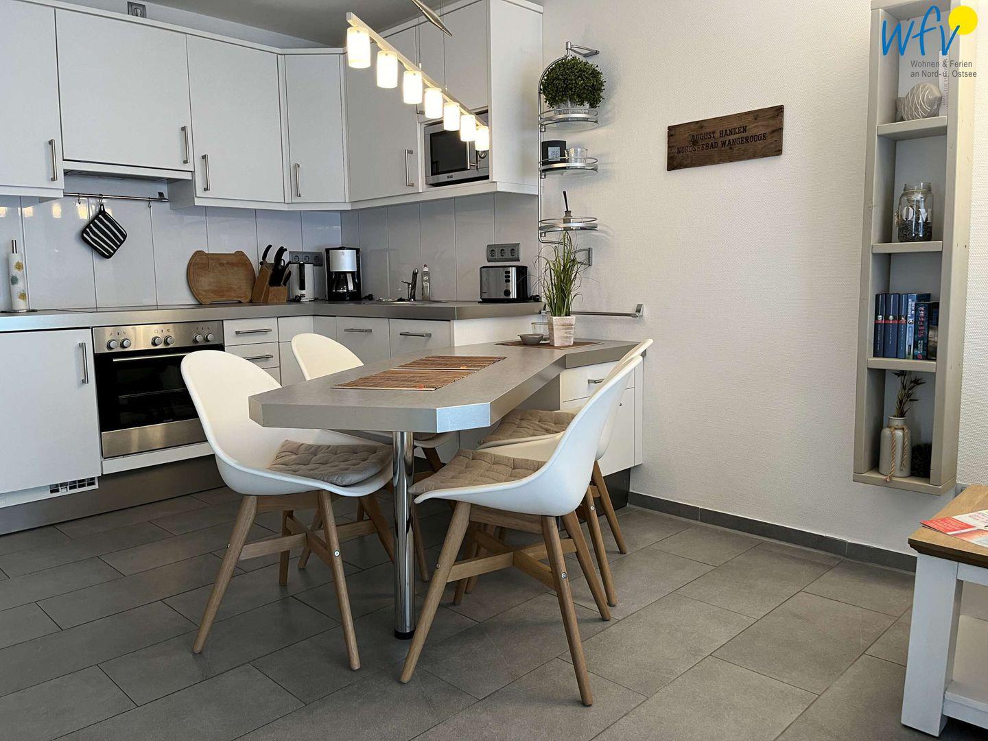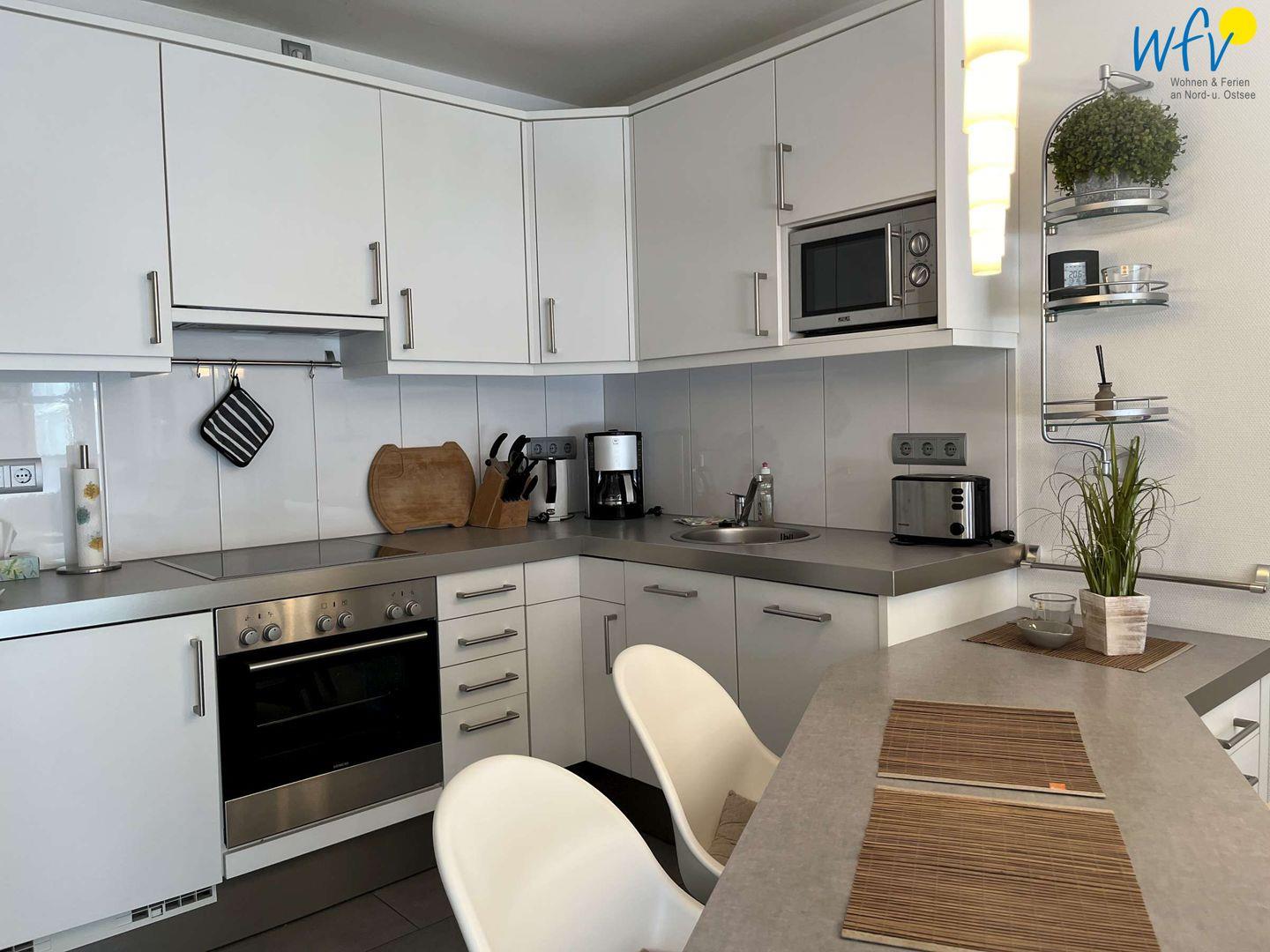 In der vollausgestatteten Küche mit Geschirrspüler, Herd, Backofen, Toaster, Kaffeemaschine, Wasserkocher etc. müssen Sie auch im Urlaub auf nichts verzichten. Angrenzend lädt die gemütliche Sofalandschaft zum Musikhören und Fernsehen ein. Kostenfreies WLAN steht Ihnen ebenfalls zur Verfügung.