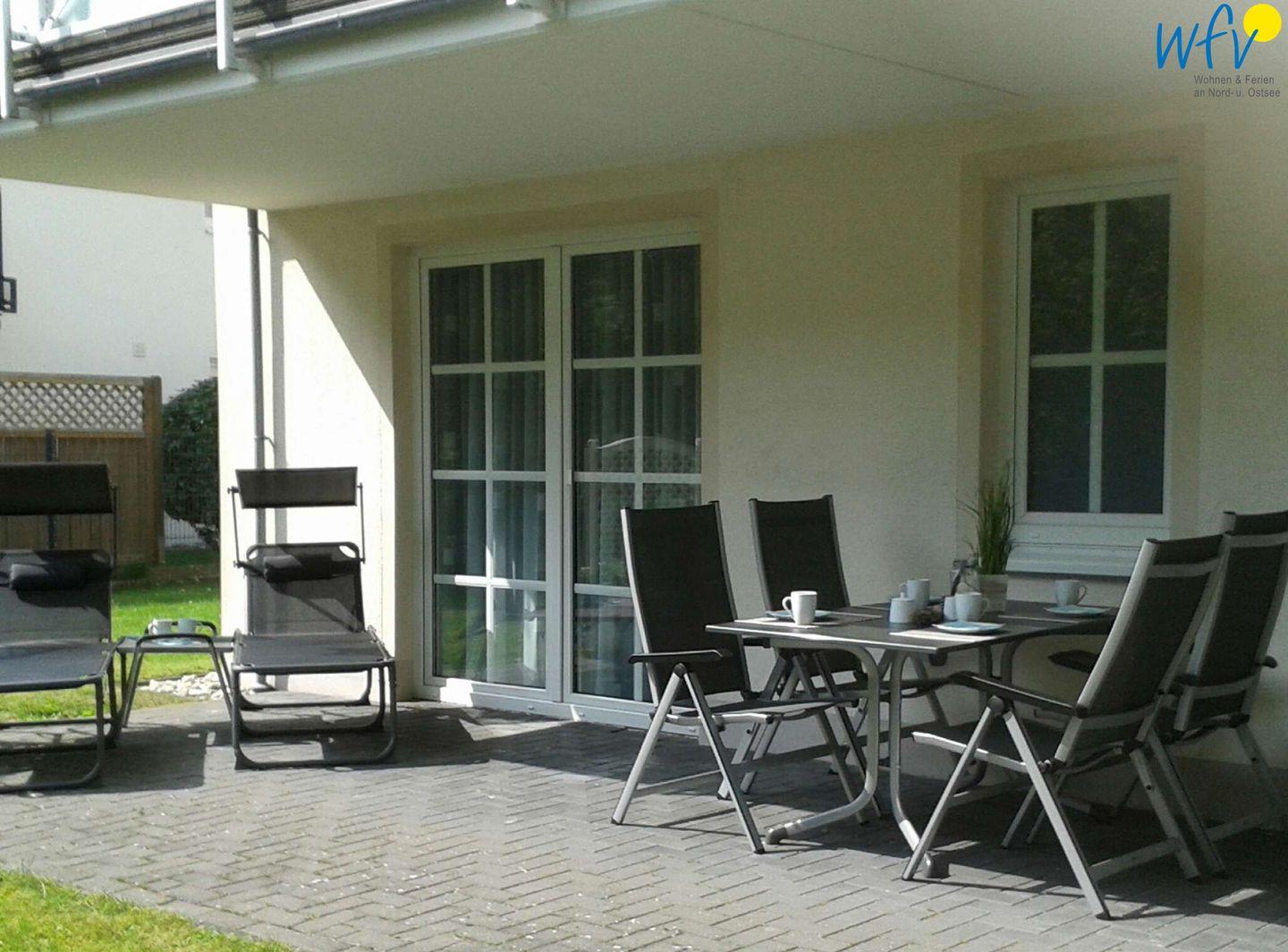 Vom gemütlichen Wohn-Essbereich mit modernen Möbeln und offener Küche gelangen Sie auf die sonnige überdachte Terrasse, die mit 27 m² ein echtes Highlight dieser Wangerooger Ferienwohnung ist! Wenn Sie einmal nicht an den naheliegenden Strand wollen, findet hier jeder einen Platz zum Entspannen: in der Sitzecke, dem Strandkorb oder auf den Sonnenliegen. Das ist pures Relaxen...