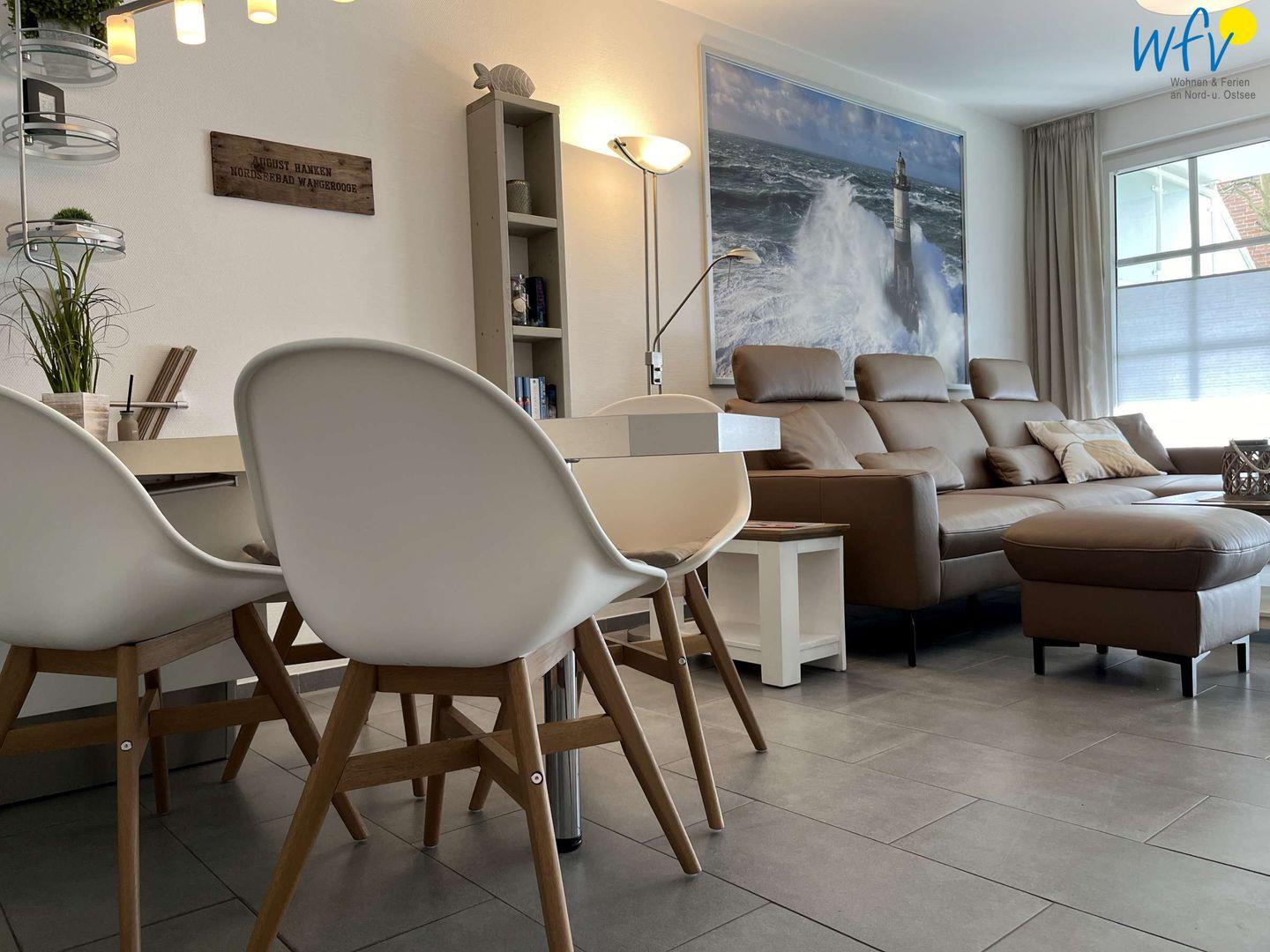 Unsere helle und komfortable Ferienwohnung auf Wangerooge besticht besonders durch ihre ruhige und dennoch zentrale Lage! In nur 100 m Entfernung liegt Ihnen die Nordsee zu Füßen, ebenso schnell sind Sie auch in der belebten Einkaufsstraße mit kleinen Geschäften, gemütlichen Cafès und Restaurants.
