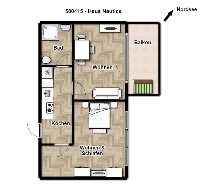 Neu gelegte Böden, modernes Mobiliar, eine neu installierte Küche und weitere aufwendige Renovierungsarbeiten machen die Wangerooger Ferienwohnung zu einer stilvollen Wohlfühloase für die ganze Familie. Helle Räume, eine liebevolle Einrichtung und eine herrliche Aussicht auf die Nordsee erwarten Sie.