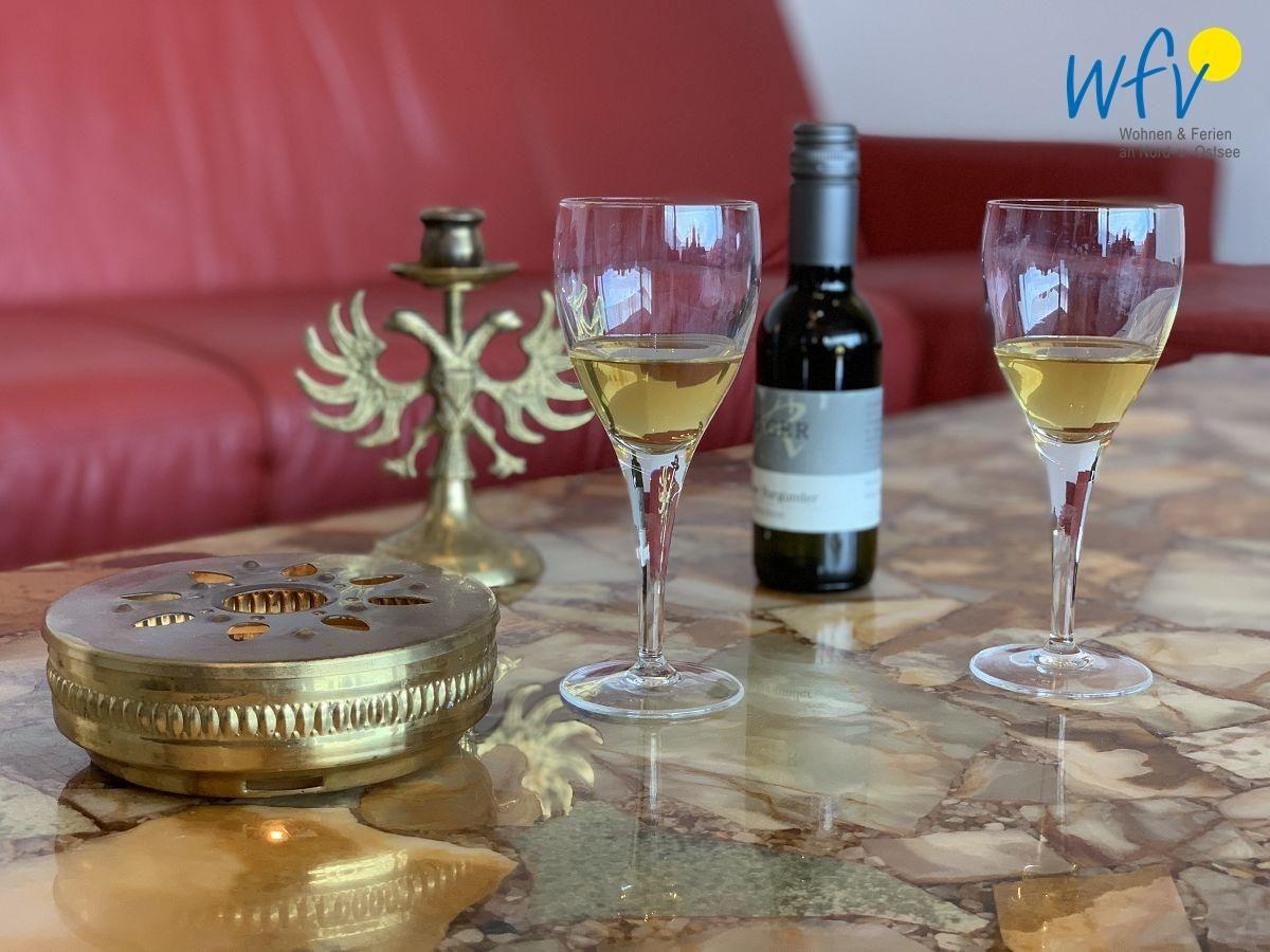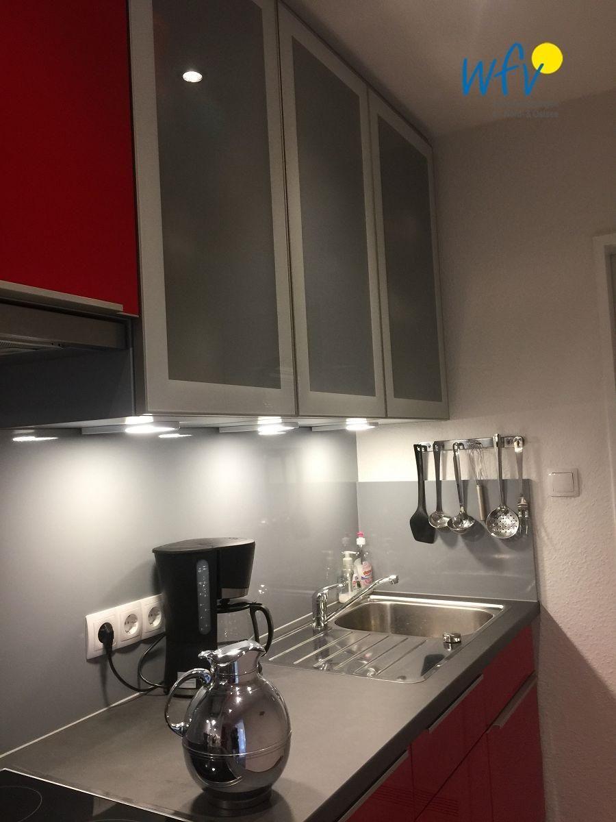 Natürlich können Sie sich auch bequem selbst verpflegen: Die moderne Küche verfügt u.a. über ein Ceranfeld, einen Backofen, eine Spülmaschine, einen Kühlschrank, einen Wasserkocher und eine Kaffeemaschine.