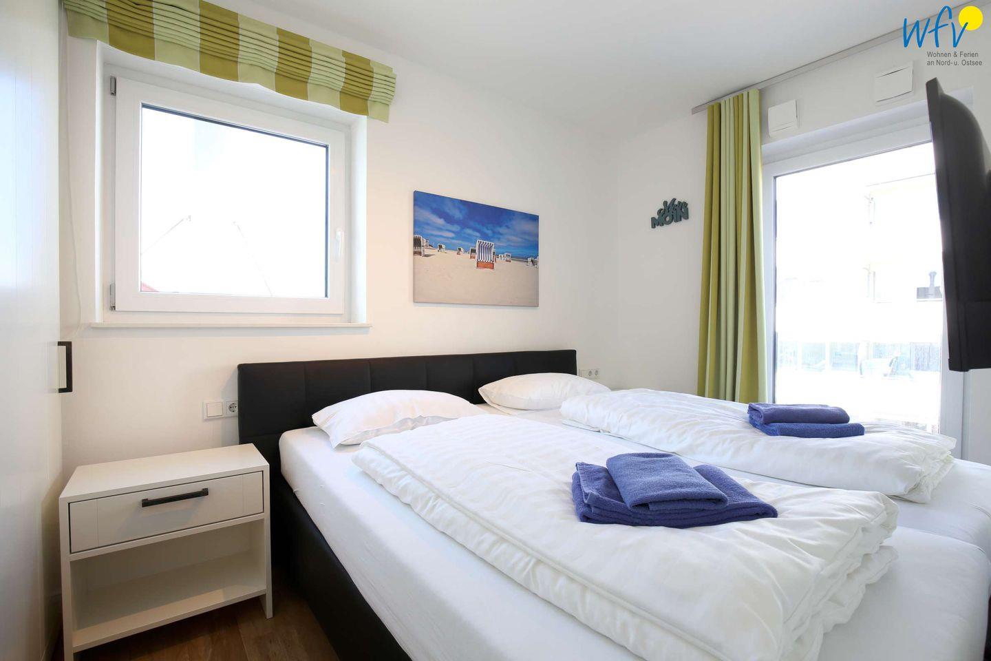 Zwei separate Schlafzimmer mit jeweils einem hochwertigen Boxspringbett für zwei Personen bieten Ihnen angenehme Rückzugsmöglichkeiten. In einem der Schlafzimmer ist ein weiteres TV vorhanden.